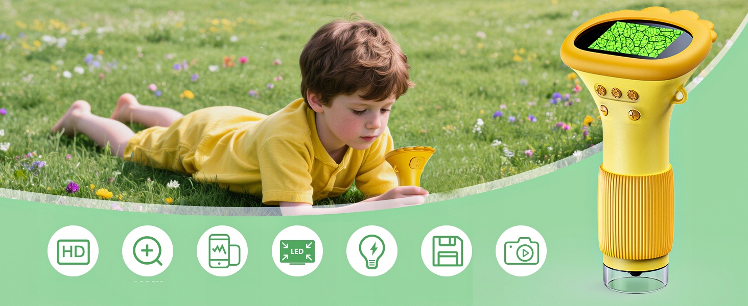 У детей есть живой 2-дюймовый дисплей высокого разрешения, который облегчает исследование микроскопического мира и обеспечивает четкое, а также интуитивные впечатления, когда наблюдает объекты