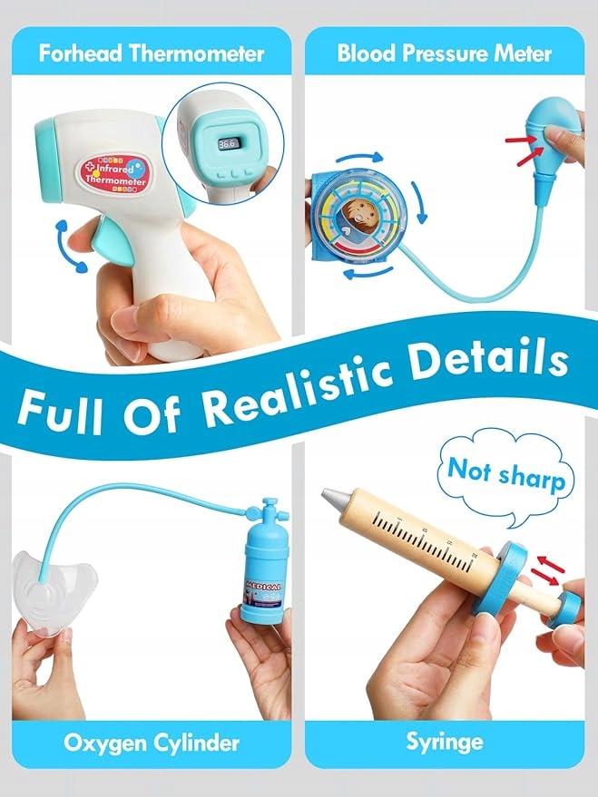 - Идеальный подарок для детей в возрасте от 3 до 8 лет, различные медицинские наборы делают это отличным выбором для подарка для детей! Идеально подходит для дни рождения, мероприятий, ролей, подарков на Хэллоуин, рождественских подарков и многих других