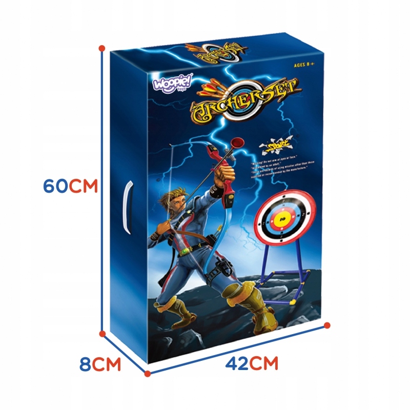 - Набор лучника от WOOPIE — отличный выбор для нашего малыша. В комплект игрушки входят лук и мишень, полностью имитирующие настоящие, плюс 3 стрелы с присоской на концах, дающие ощущение настоящей стрелы. Кроме того, у нас также есть устойчивая мишень, которая позволит вам потренировать зрительно-моторную координацию при попадании в цель. Все выполнено в приятных приглушенных тонах, которые привлекают внимание и способствуют веселью.