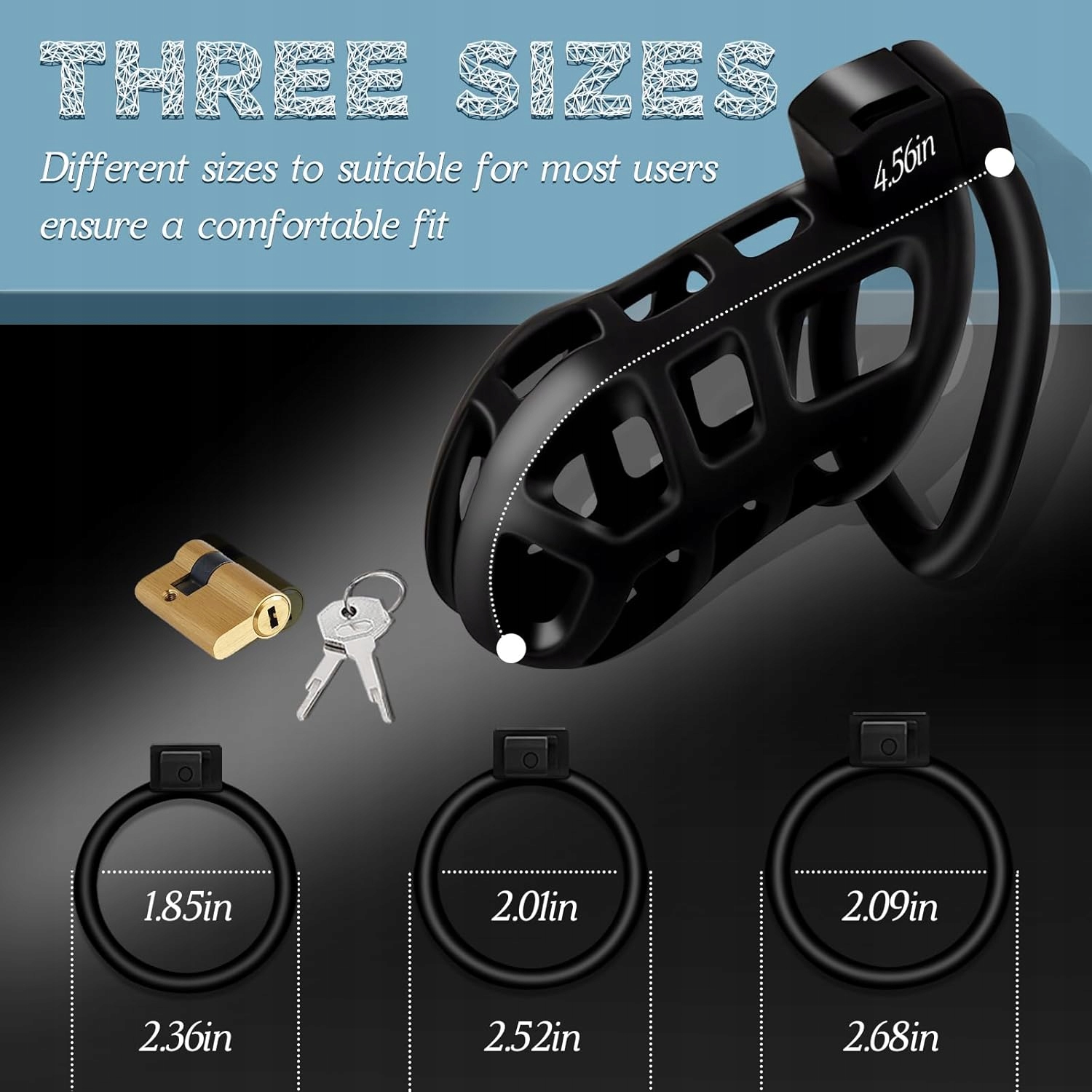 Маленький светлый черный ремень добродетели для пениса клетки 3 Orings l h1>