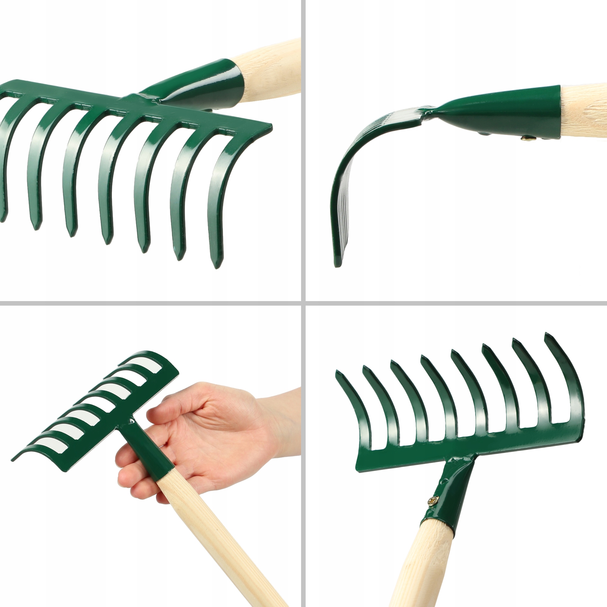✅Грабли с 8 зубьями эффективно справляются с различными работами. Изделие идеально подходит для выравнивания земли, перемешивания и рыхления почвы, сгребания мусора, сгребания травы.