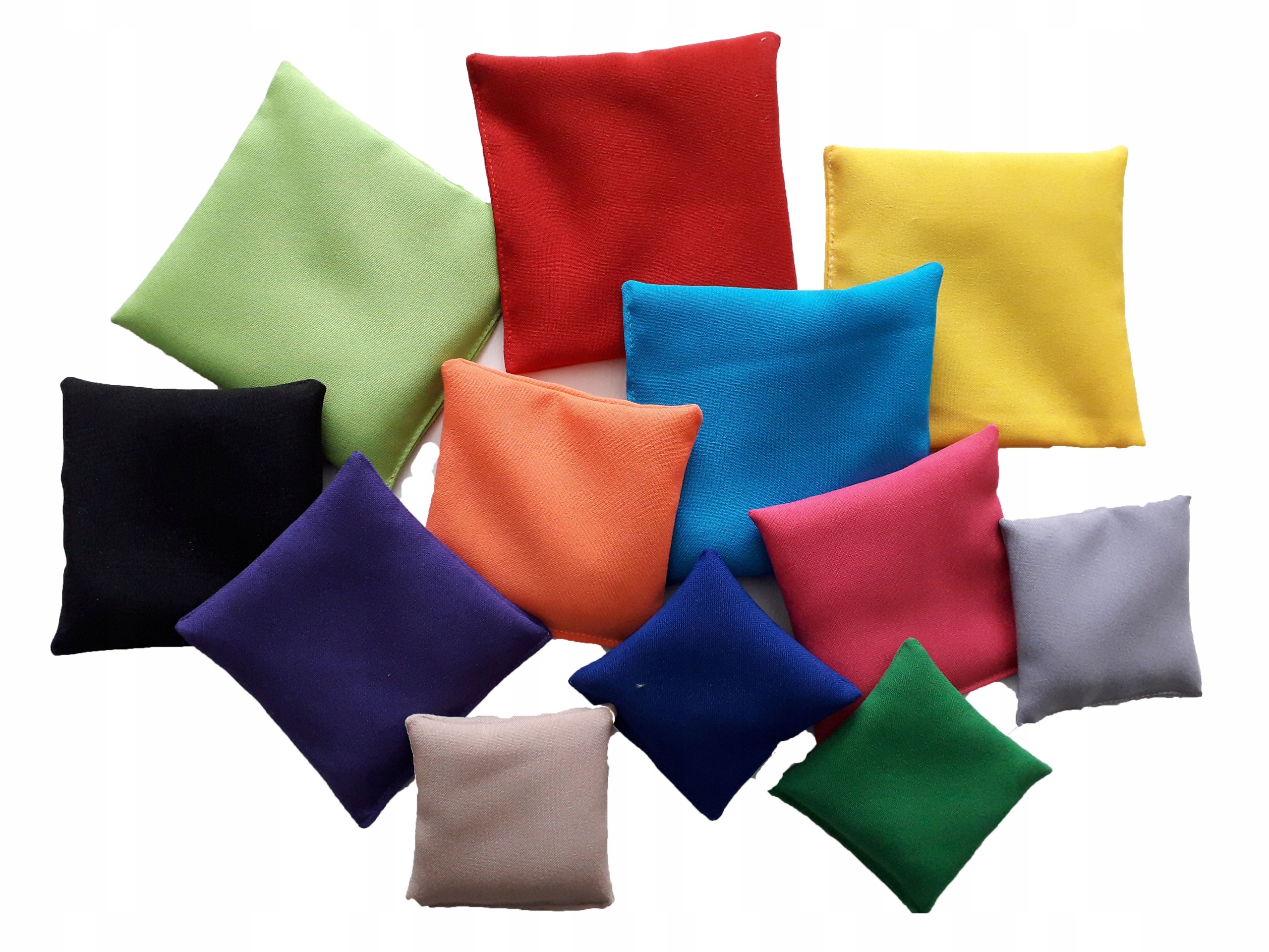 Набор из 12 гимнастических сумок, пошитых в 3-х размерах: маленький - средний - большой, наполнен натуральным гравием и 12 цветами.