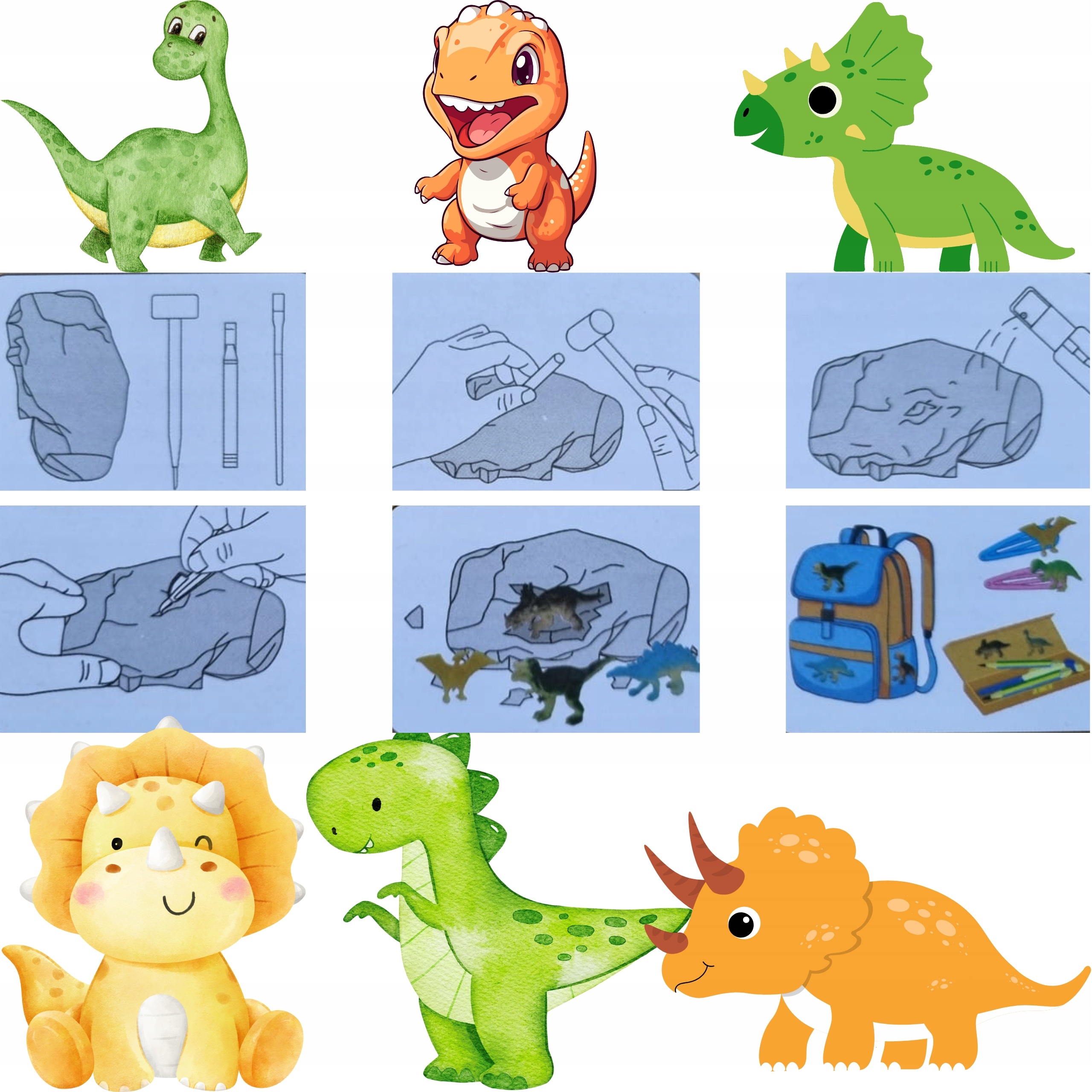 - Содержимое: Затонувший камень динозавра, готовый к обнаружению, Археологический набор инструментов, включающий молоток, кисть и долото, которые помогут аккуратно обнаружить окаменелость.