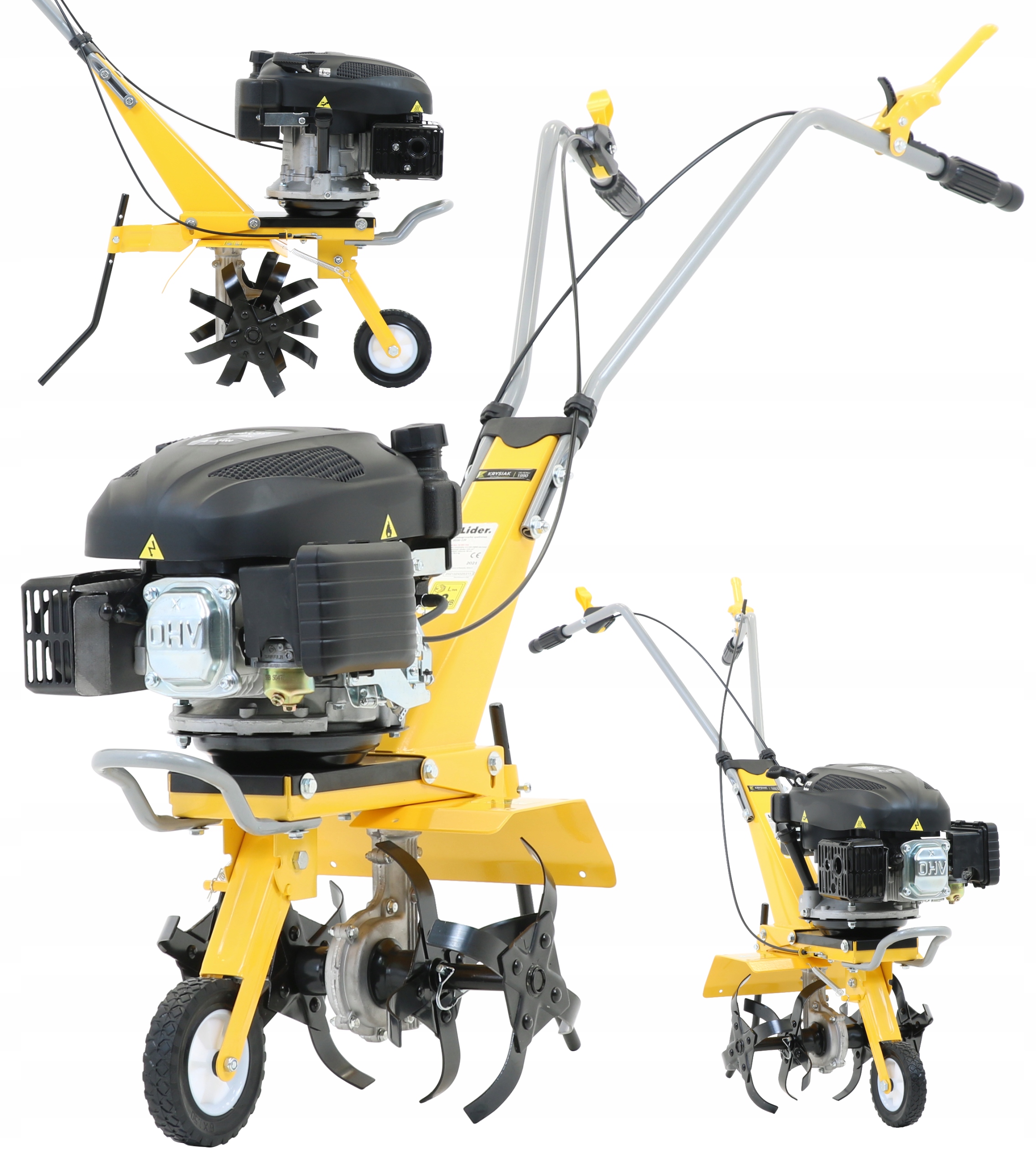 Работу можно выполнять благодаря ножам специальной формы. Они приводятся в движение благодаря работе 4-тактного верхнеклапанного двигателя объемом 139 см3. Рабочая ширина рыхления – 36 см, максимальная глубина обработки – 20 см.