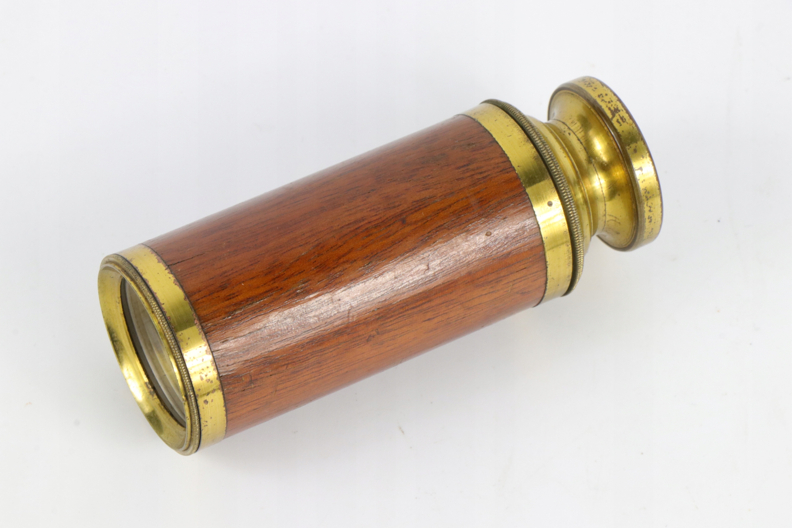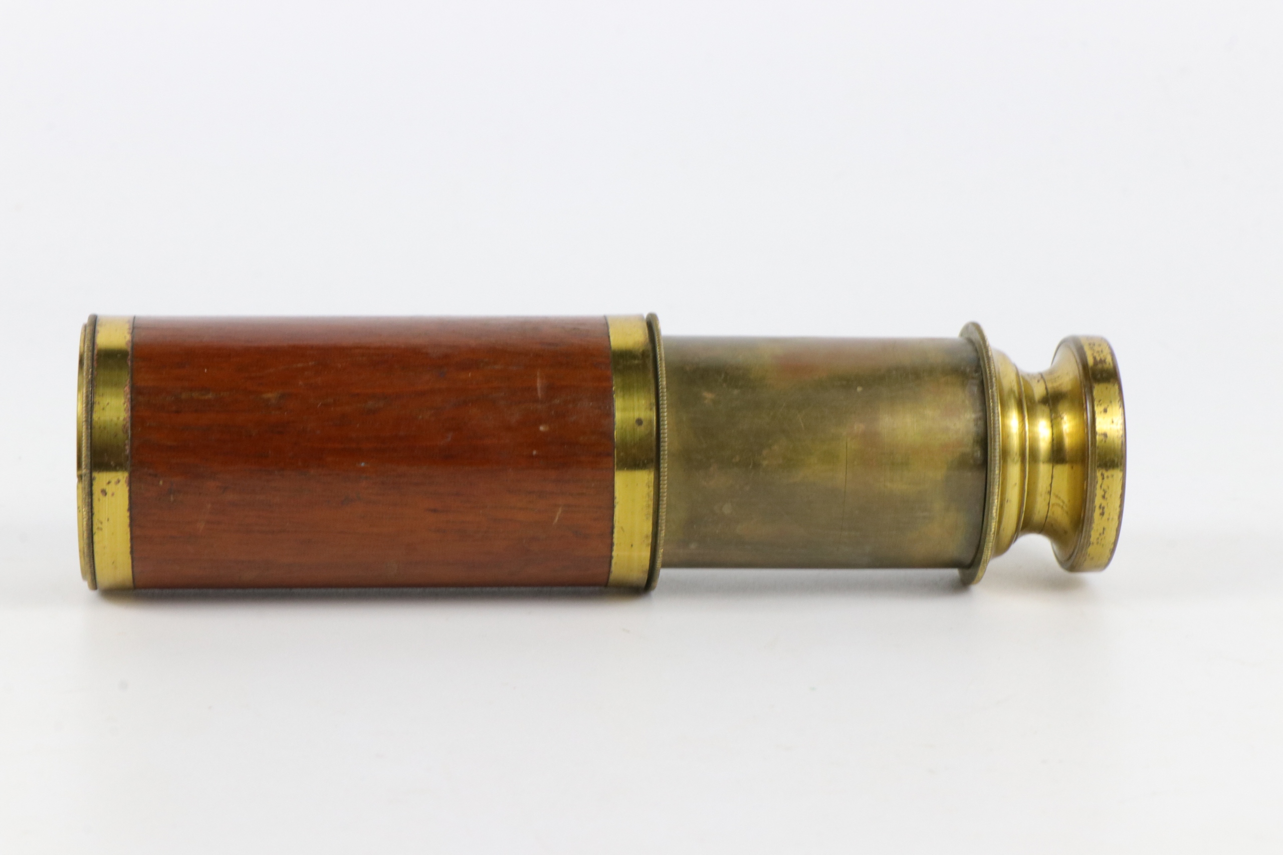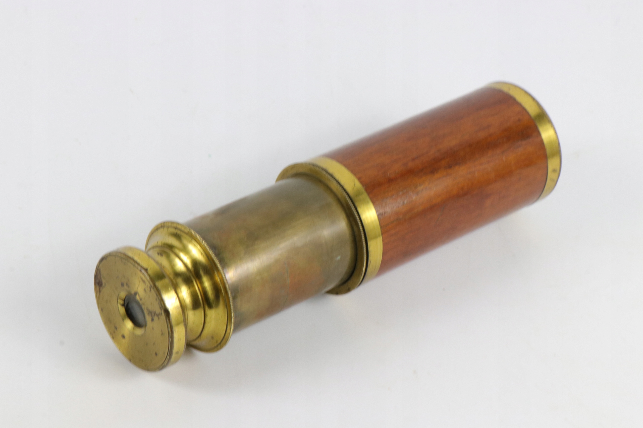 Очень маленький двухсекционный телескопический телескоп. Телескоп с деревянной крышкой первой части.
