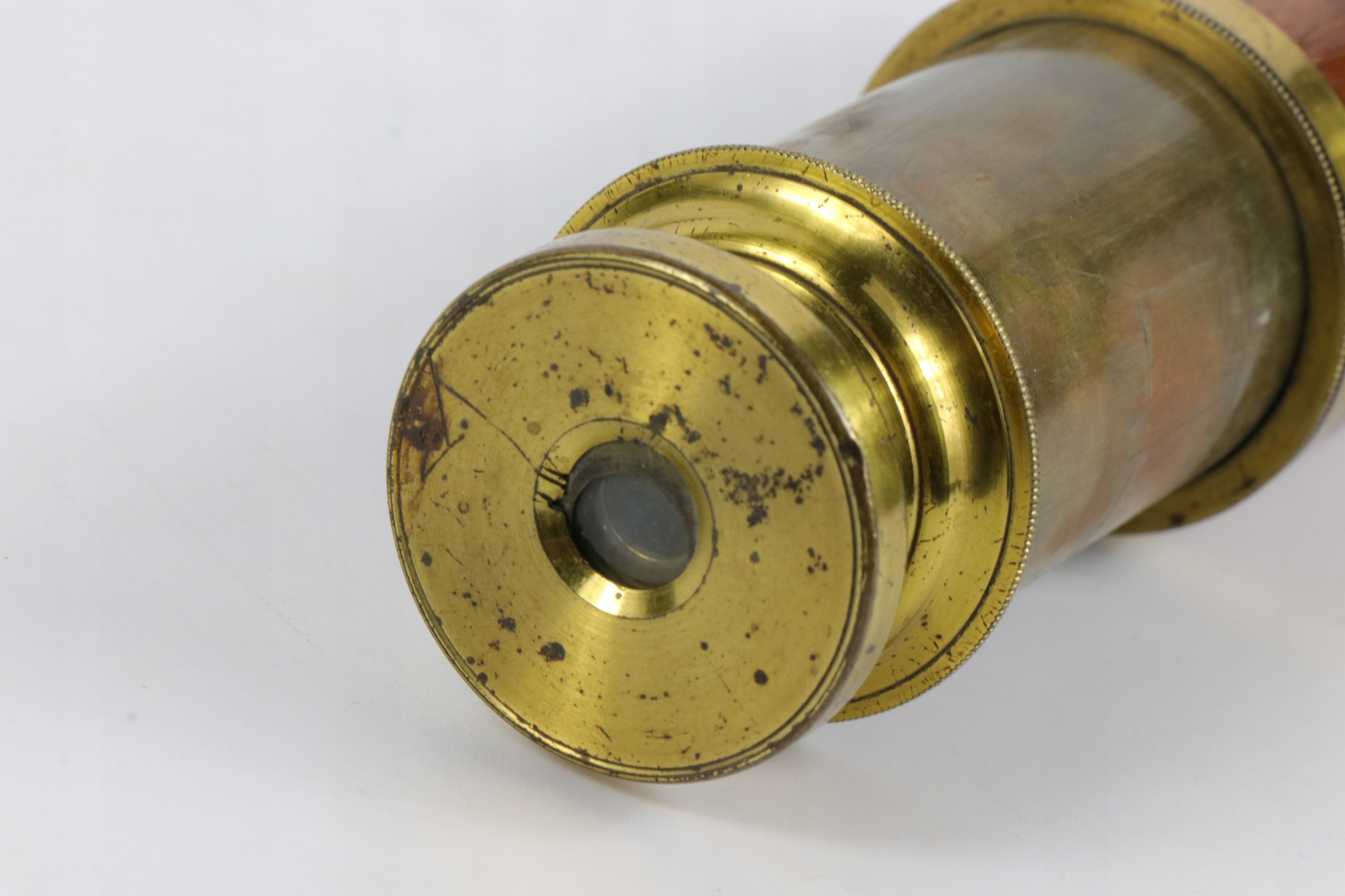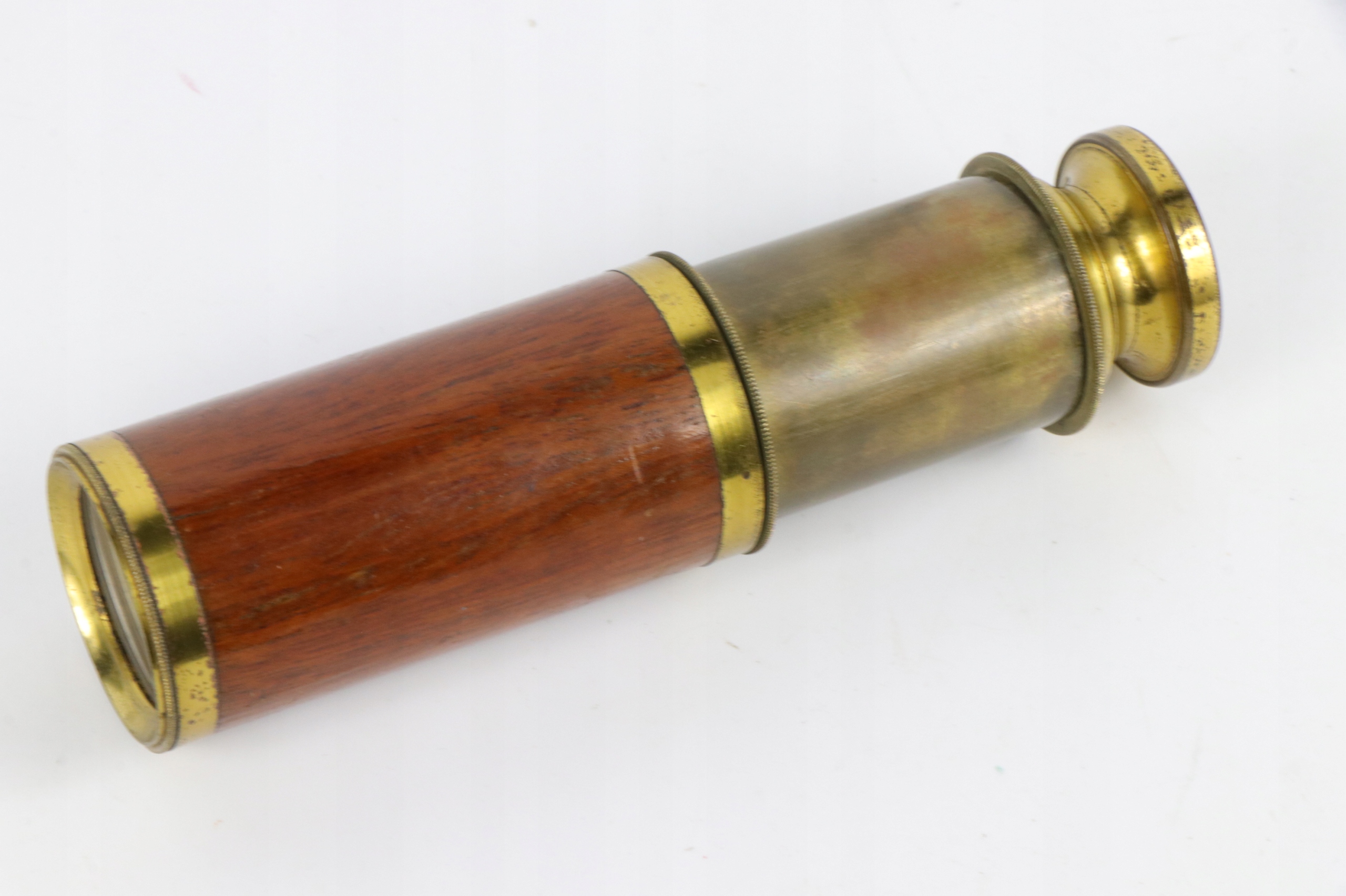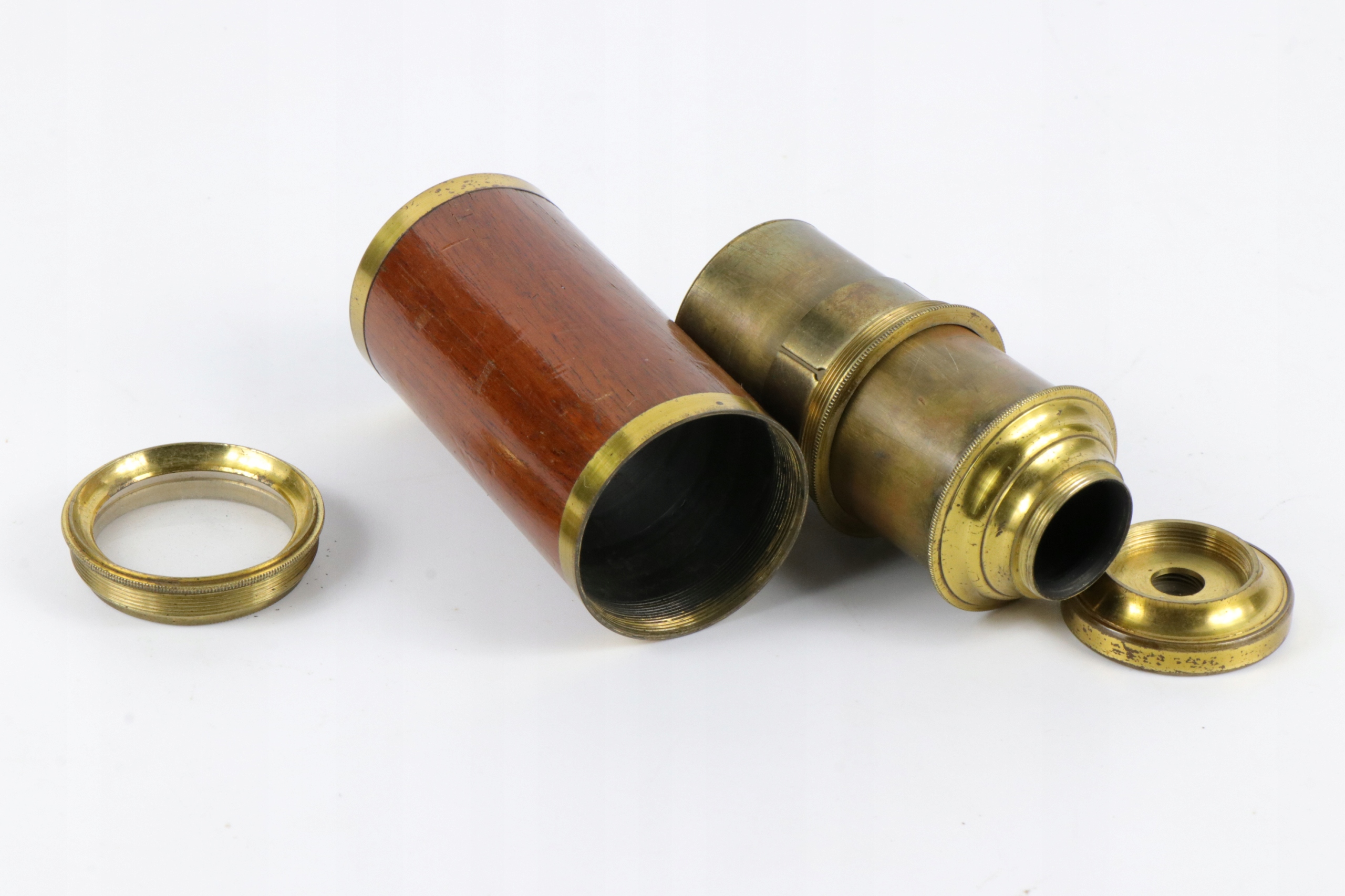 Очень маленький двухсекционный телескопический телескоп. Телескоп с деревянной крышкой первой части.