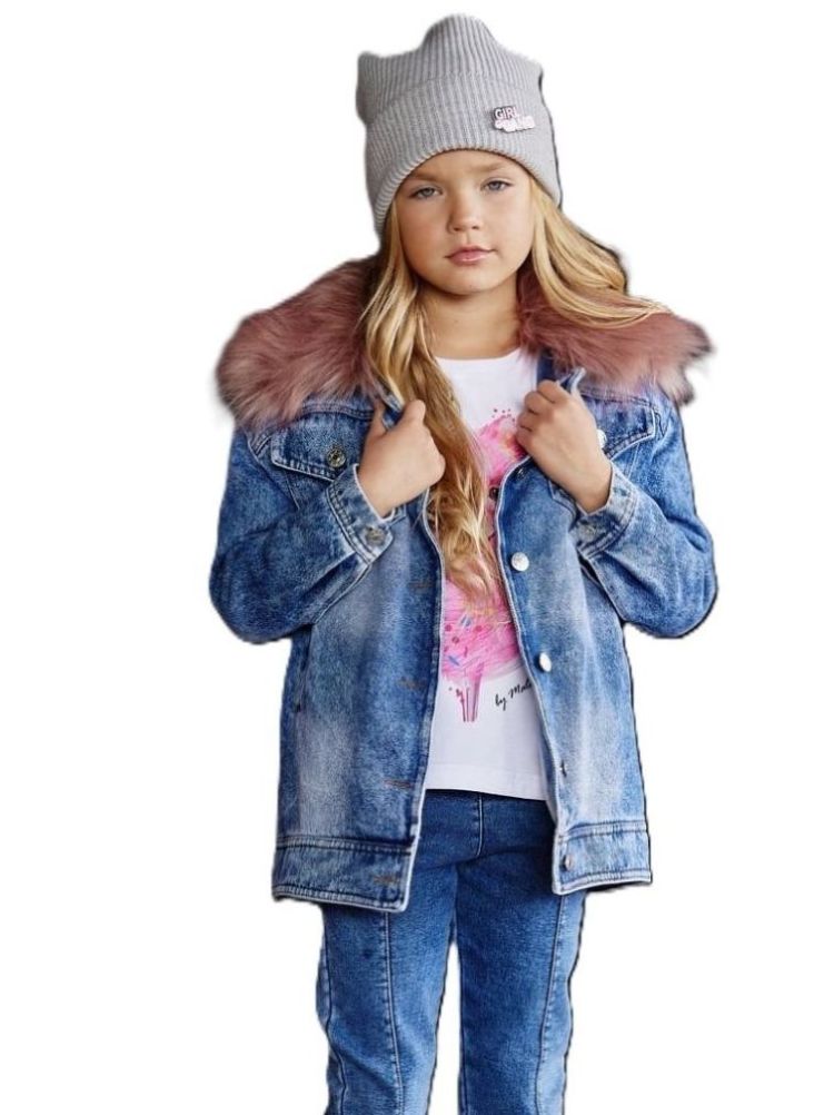 MAŁAMI MAŁA MI ТЕПЛАЯ КУРТКА ДЖИНСОВАЯ КАТАНА, СЪЕМНАЯ МЕХА ХИТ 122 - 128