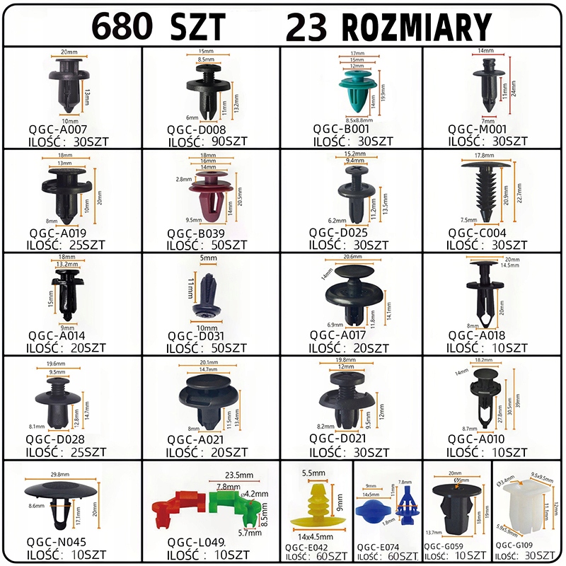 Клипсы дюбели для автомобиля и автомобильной обивки 680 кусочков +45 Элементы и инструменты упаковка