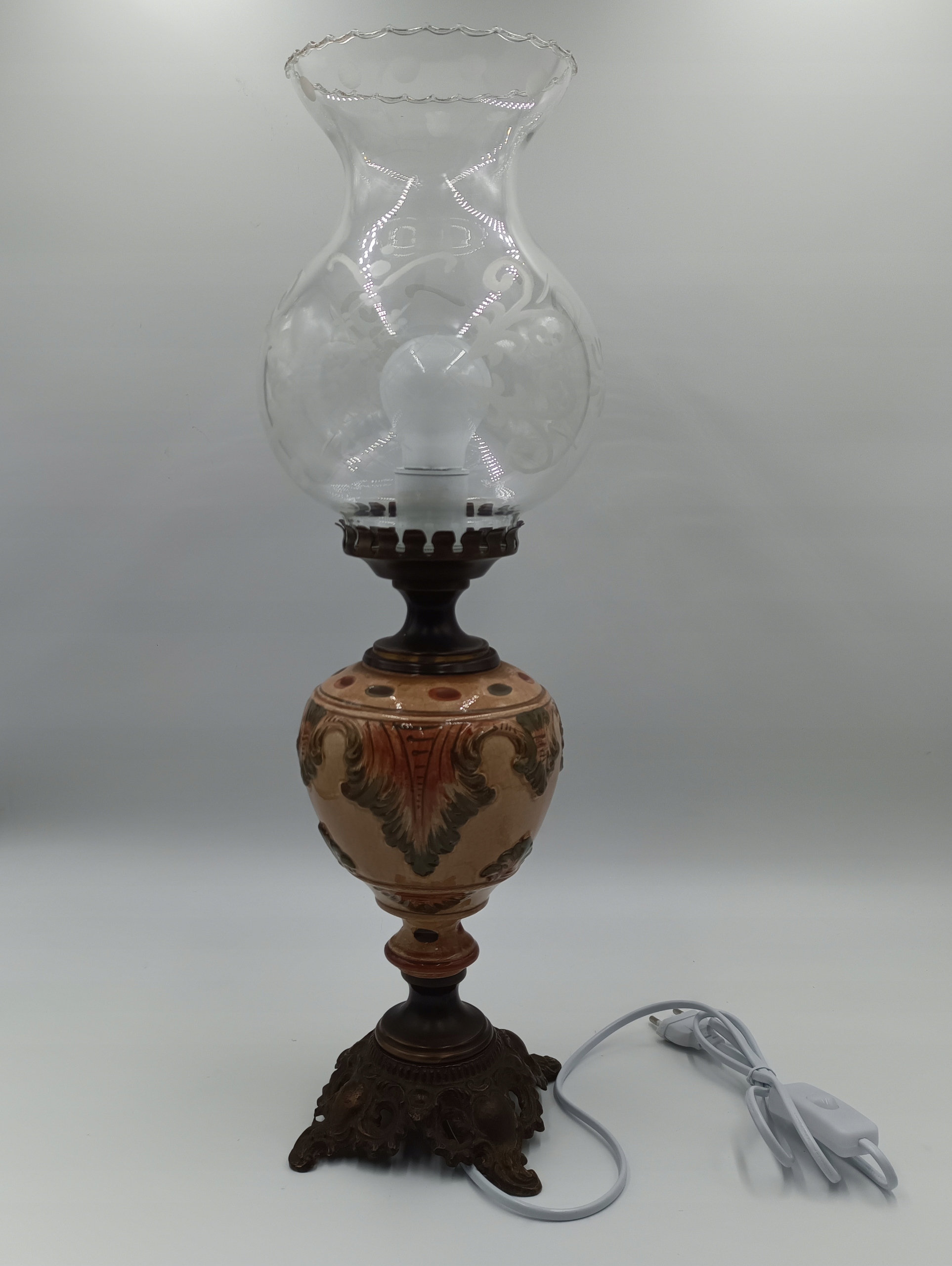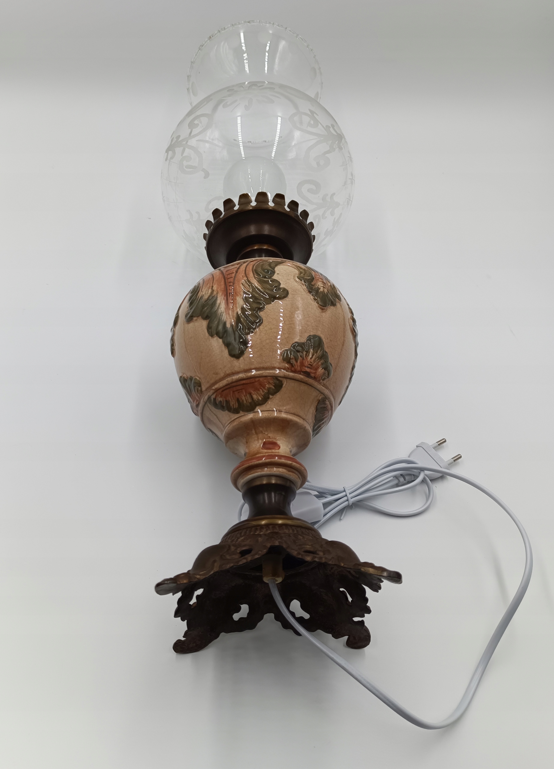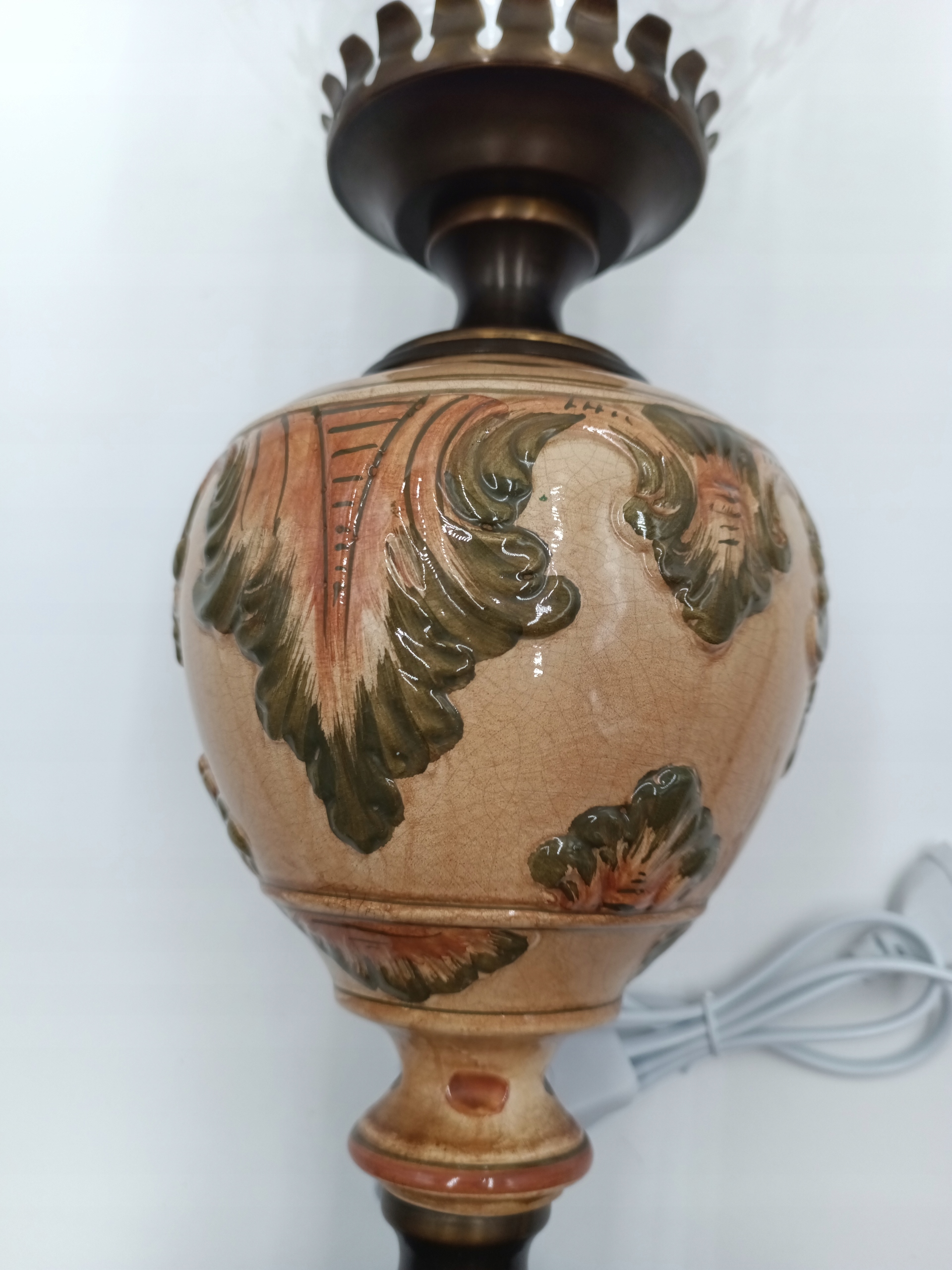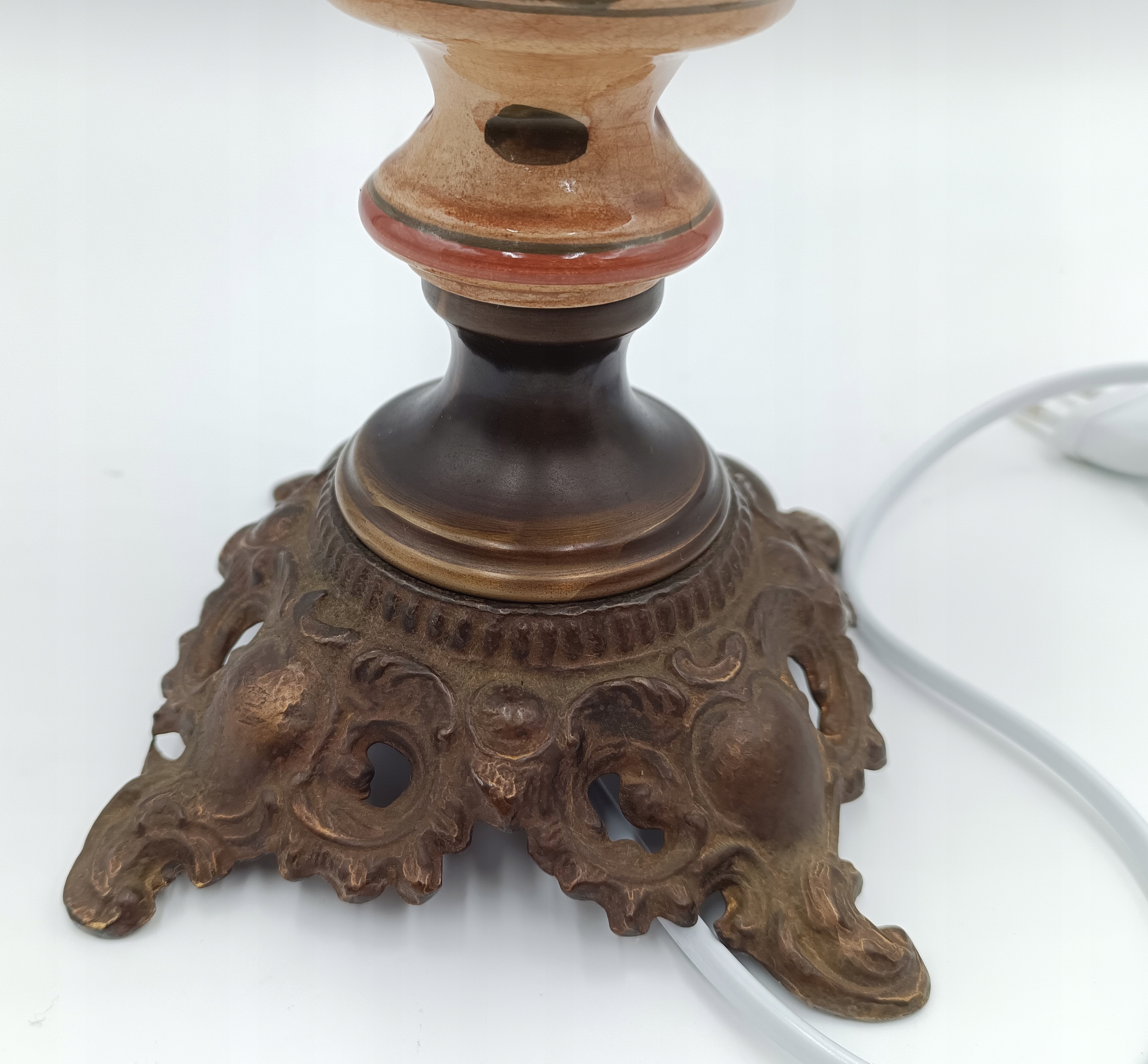 - нога с латуни, резервуар из керамики, это ручная работа, симпатичная Кракле, столкновение на абажуре из латуни. Тень из ручного стекла- уже винтажный винтарный ценный !!!