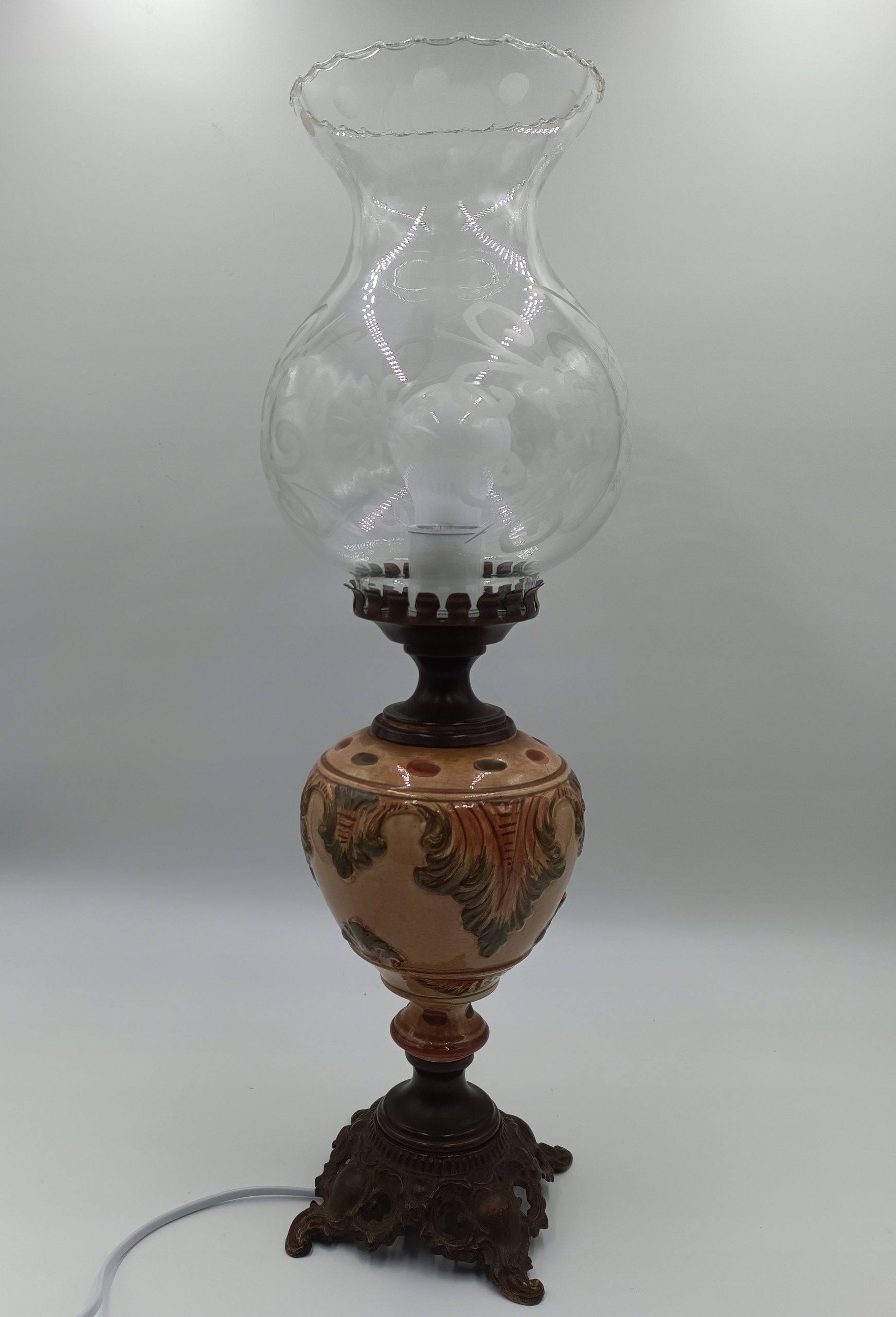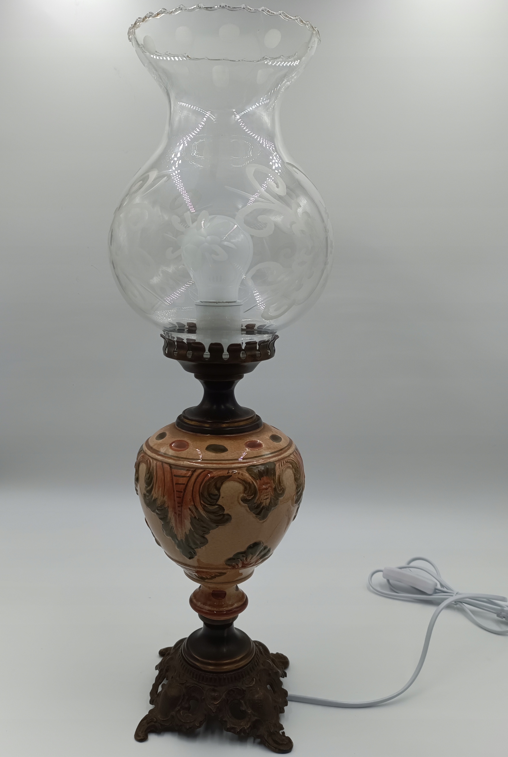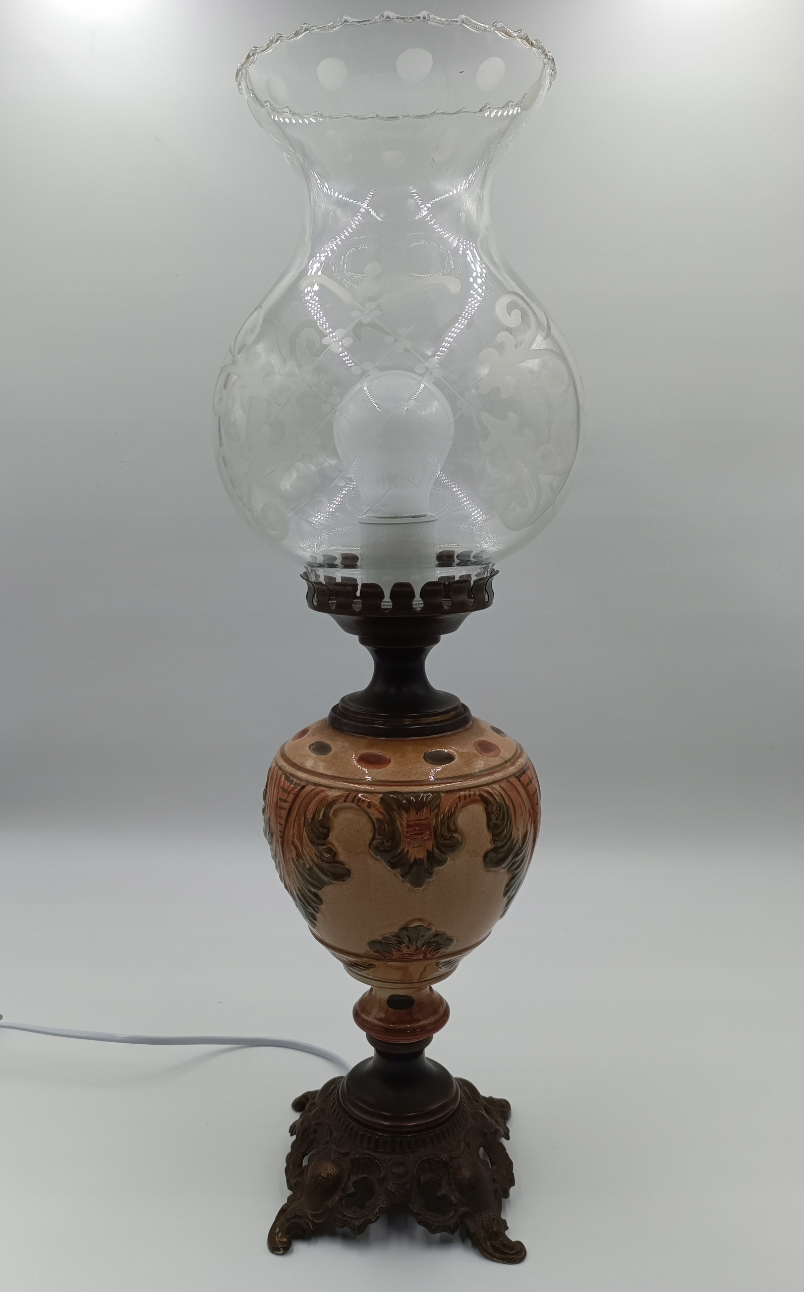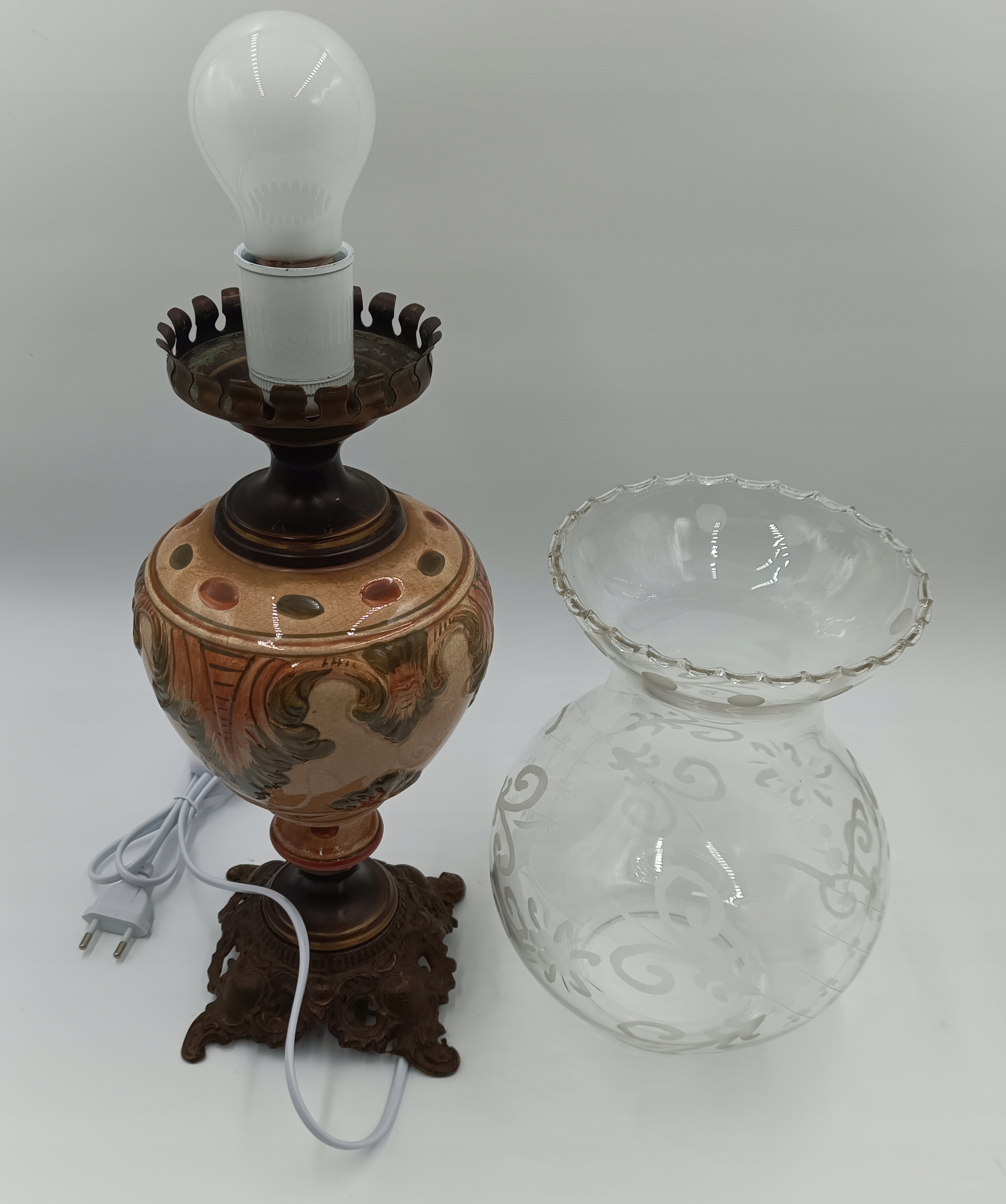 - нога с латуни, резервуар из керамики, это ручная работа, симпатичная Кракле, столкновение на абажуре из латуни. Тень из ручного стекла- уже винтажный винтарный ценный !!!