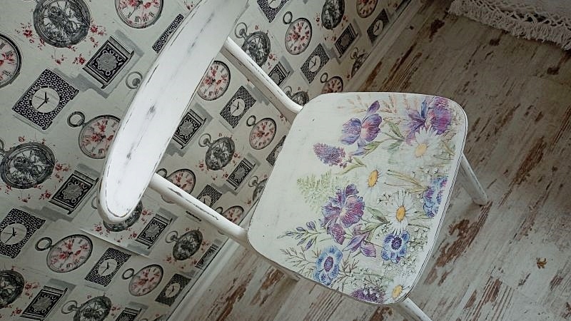 MALOWANE KRZESŁO, ŁĄKA, SHABBY, PO RENOWACJI