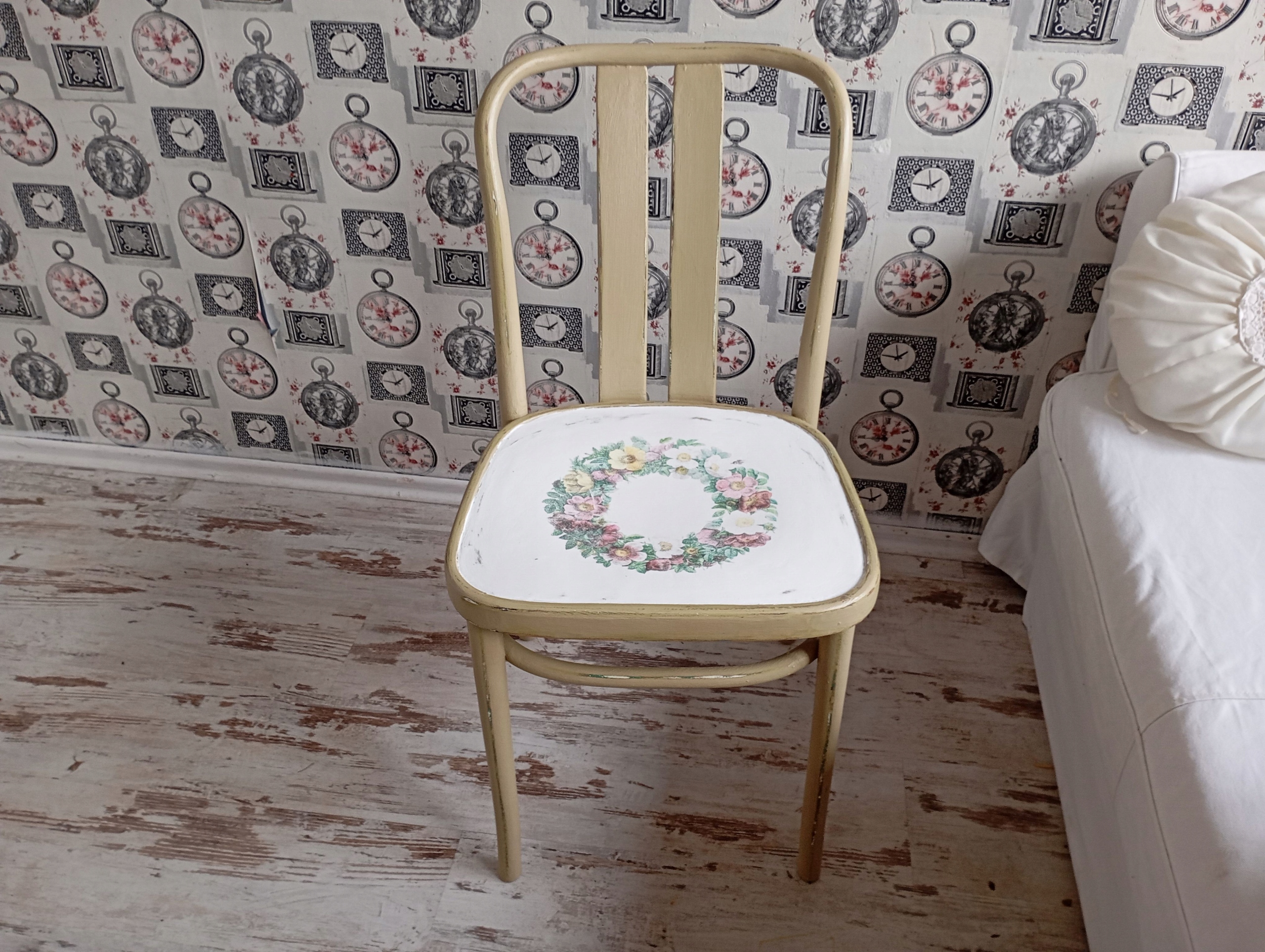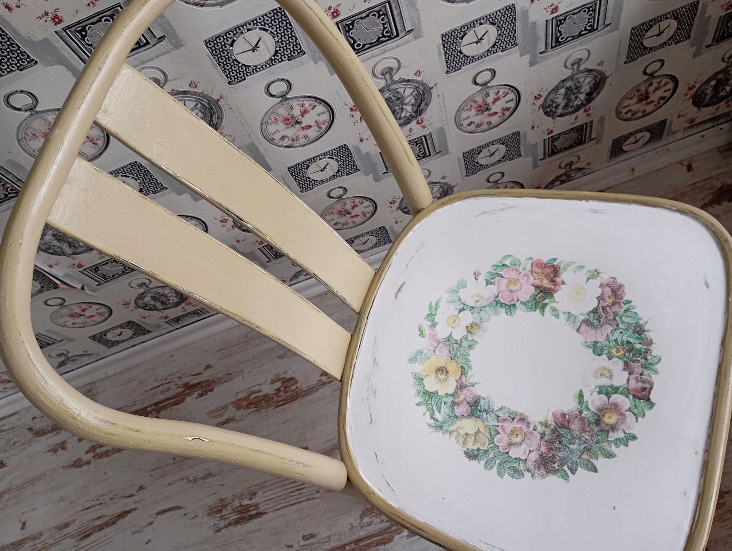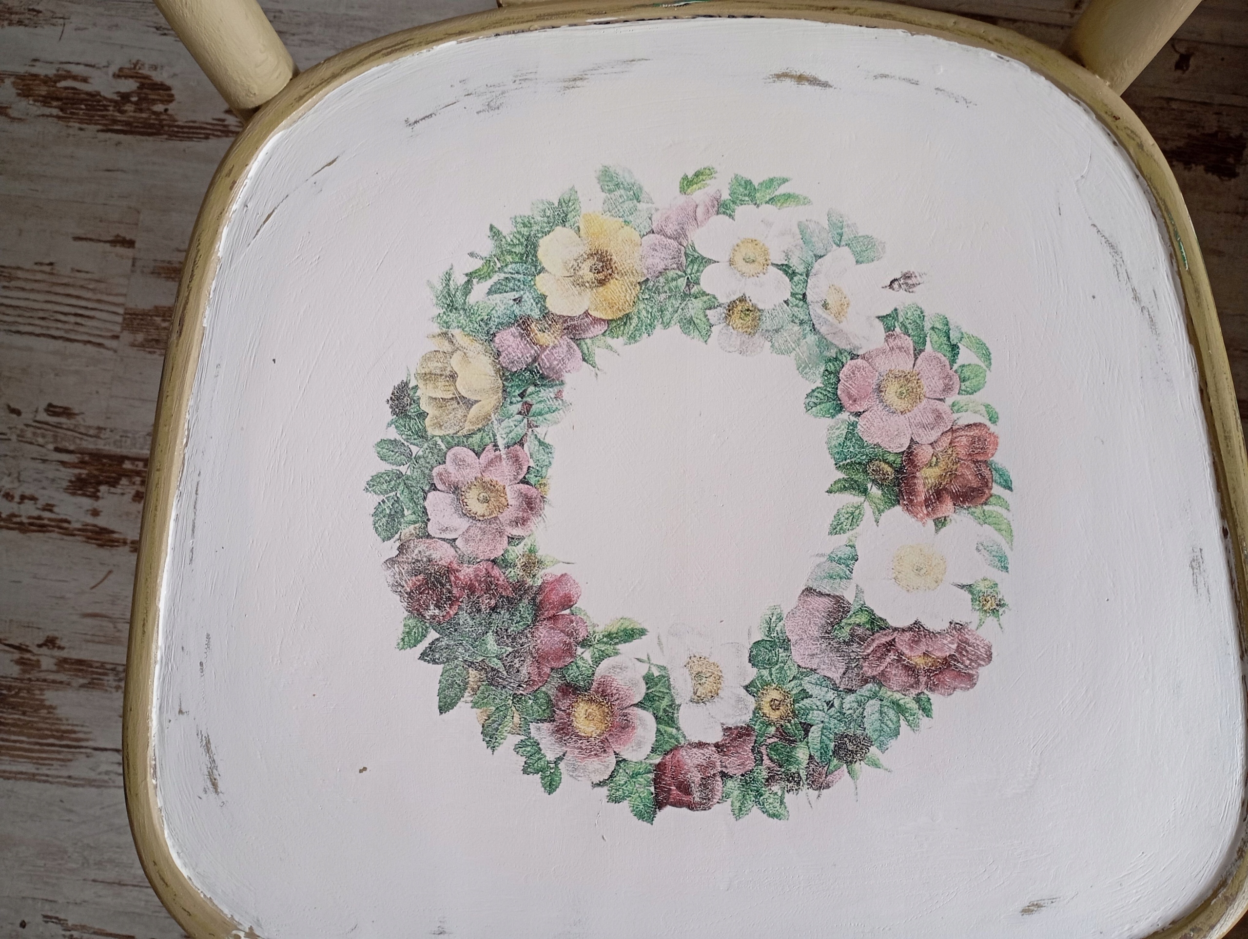 MALOWANE KRZESŁO, KWIATY, SHABBY, PO RENOWACJI