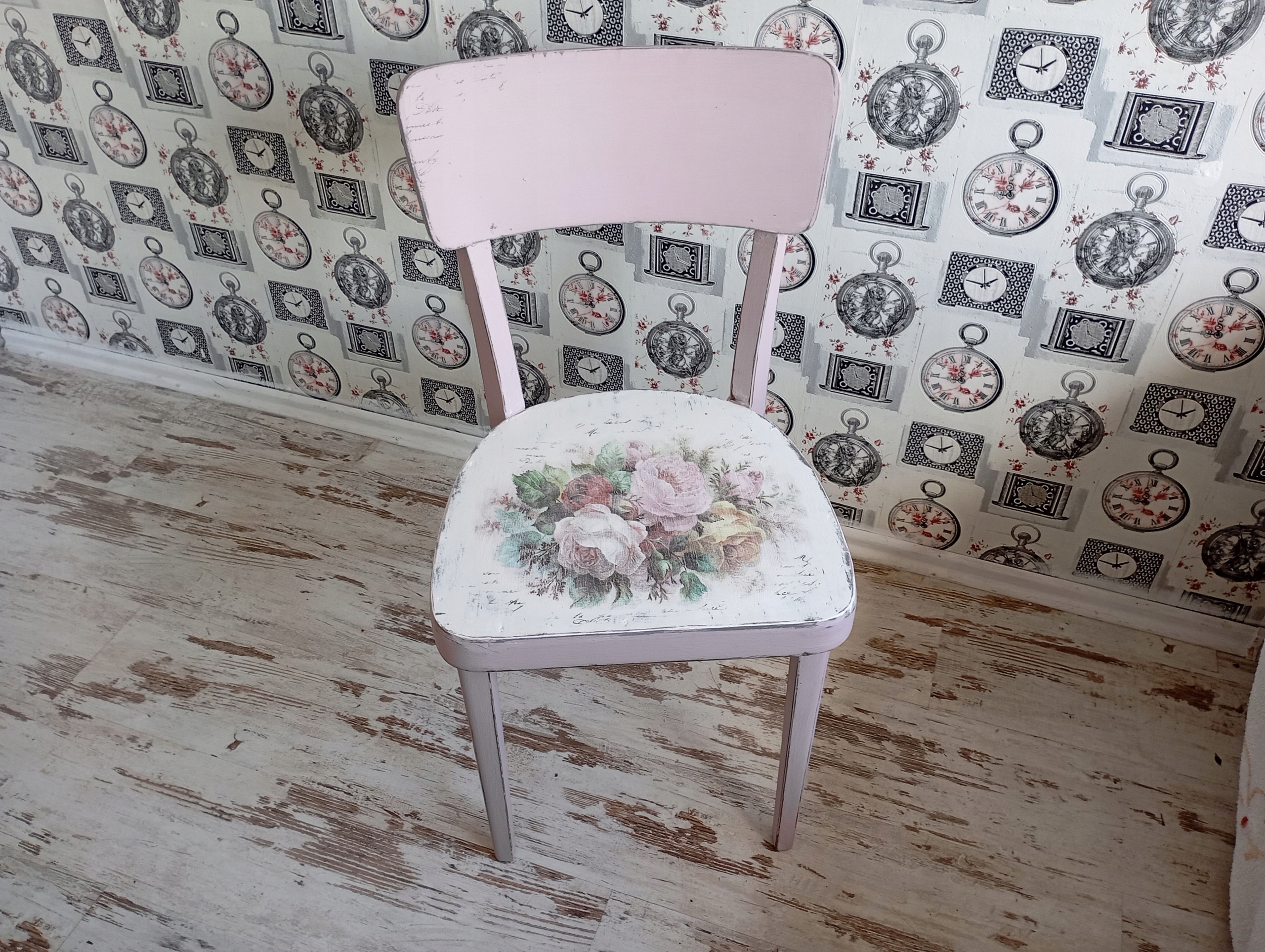 Окрашенный стул в стиле шебби-шик,