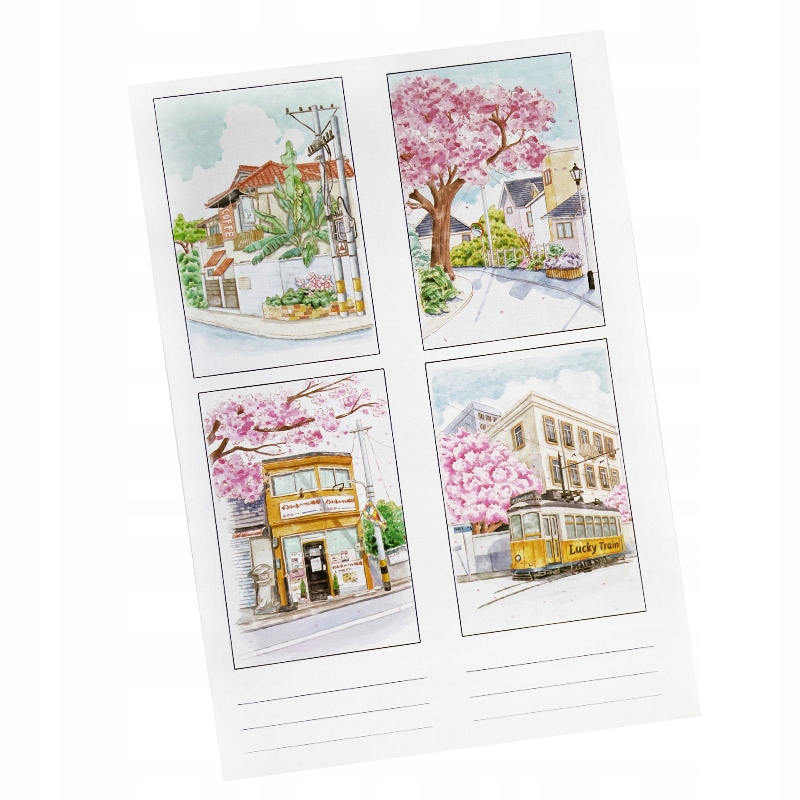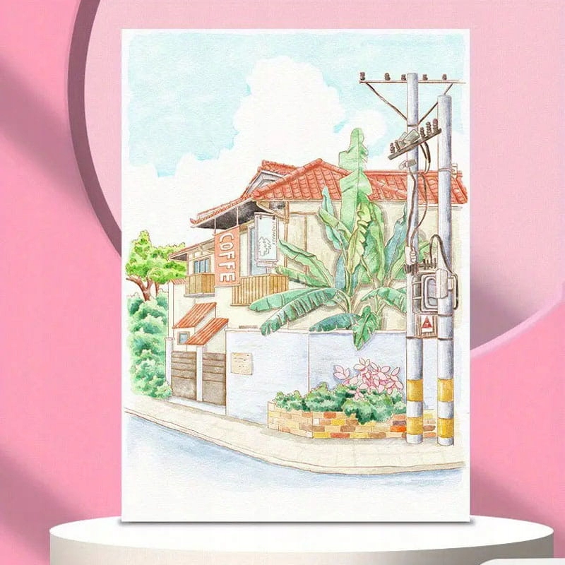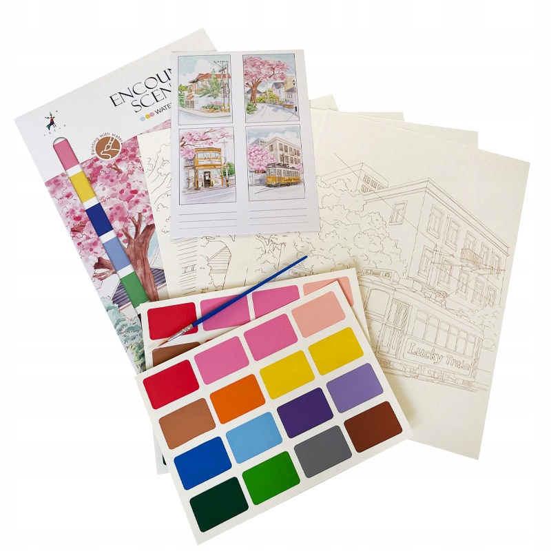 Malowanie akwarelą Pejzaż miejski Ramka Obrazek Farby Pędzel DIY Na ścianę