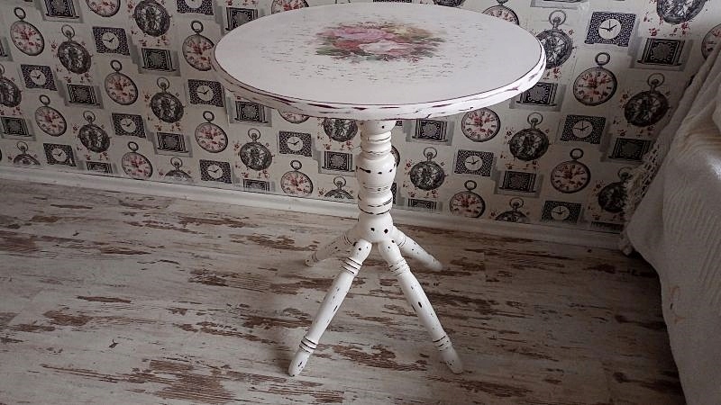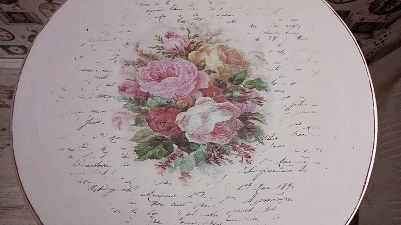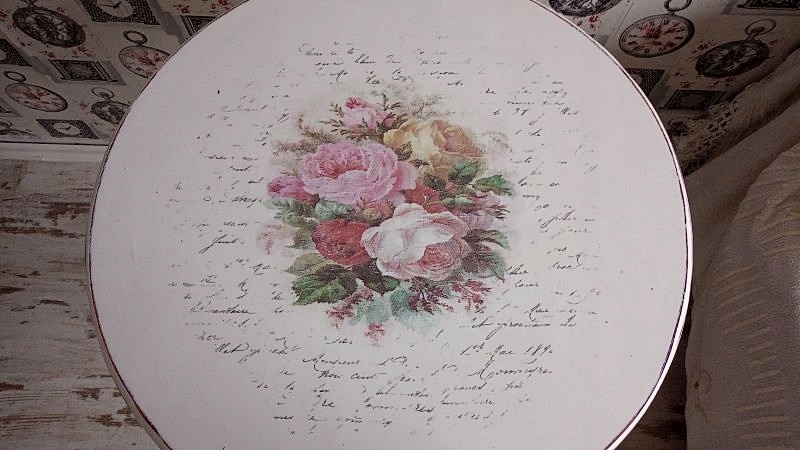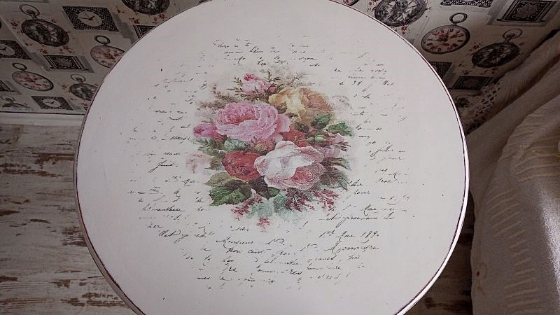MALOWANY OKRĄGŁY STOLIK , RÓŻE SHABBY CHIC