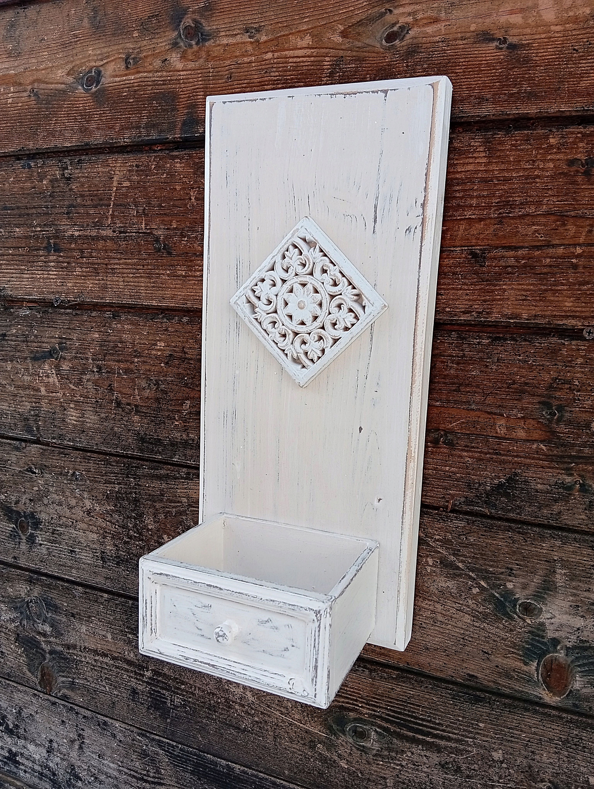 Расписная декоративная подвесная панель - полка, стиль шебби-шик.