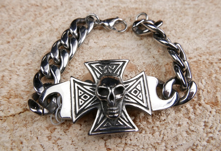 Мальтійський хрест Череп 316L сталевий браслет Mot