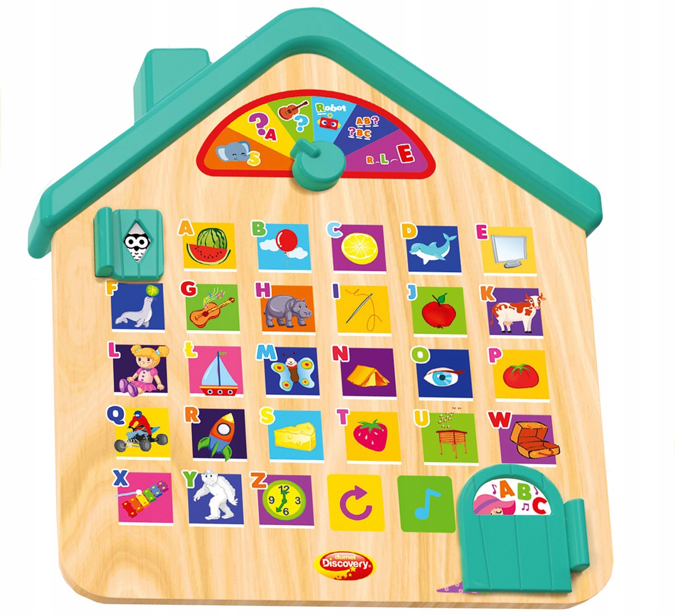 Открывающаяся дверца скрывает кнопку, запускающую песенку об алфавите.