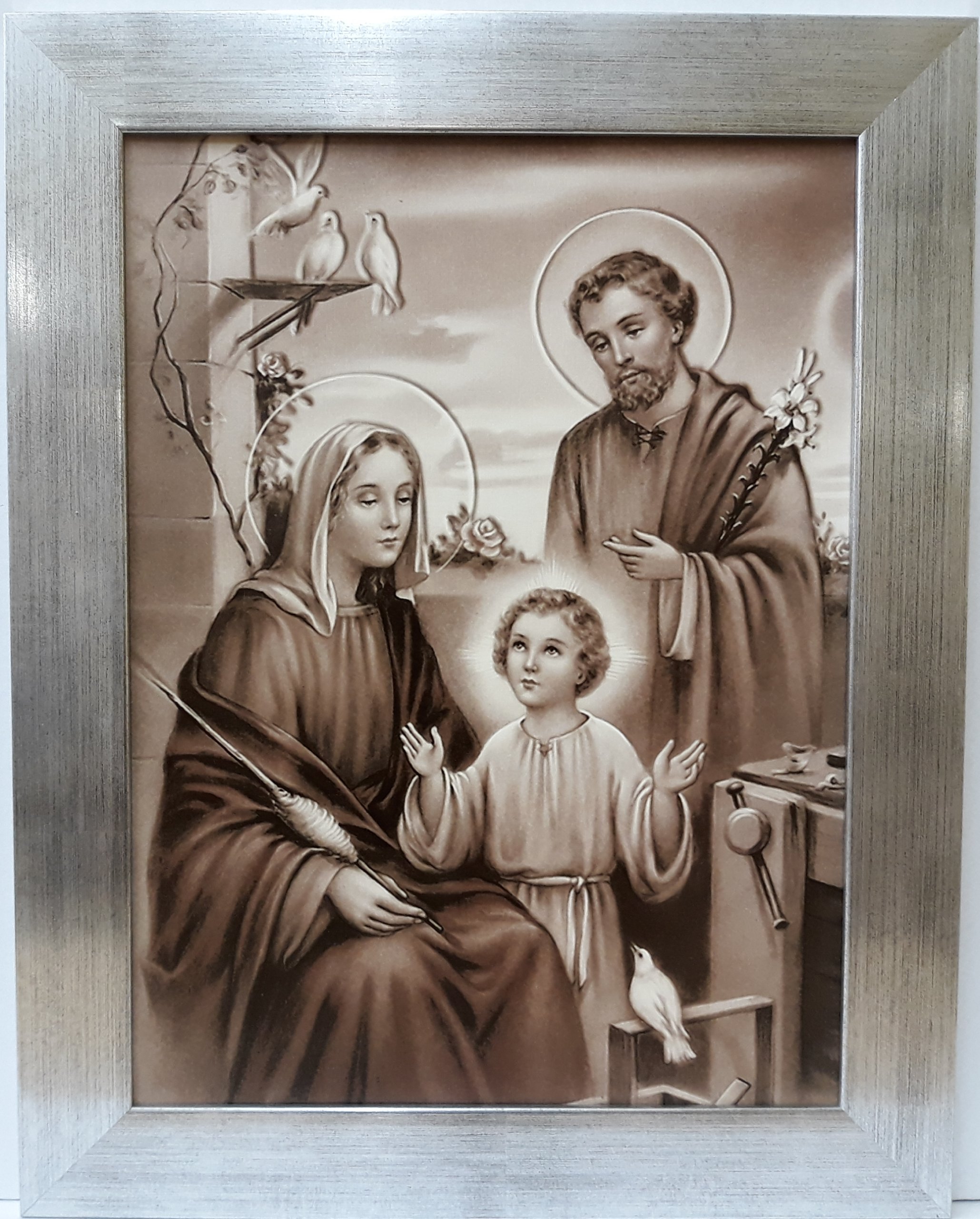 изображение Святое Семейство в цвете Сепи в серебряном рамке