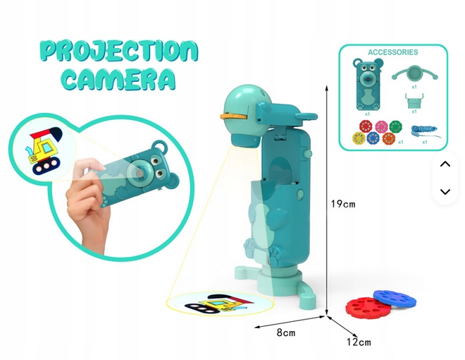 - ✔ Подвижная голова и простота управления – ребенок может самостоятельно менять слайды, устанавливать проекцию и контролировать направление рисунка, что развивает чувство свободы действий,