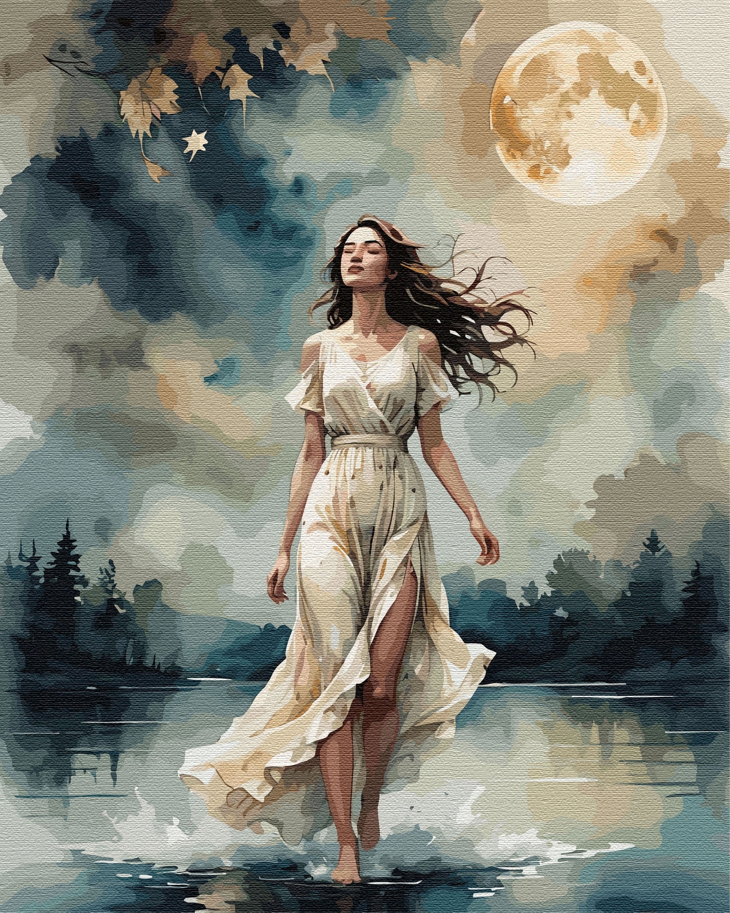 Живопись для рисования после чисел «Ночь, блуждающий в лунном свете». Вы можете купить для себя или в качестве подарка независимо от ее возраста. Работа над своей окраской определенно даст много приятных моментов , и уже выполненная работа станет прекрасной и эффективной идеей для подарочного , которую вы можете украсить квартиру или офис.