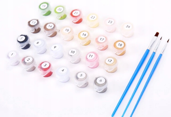 Живопись Числа - отличное развлечение для всех! Единственное, что вы должны отдать от себя, - это желание и момент свободного времени и банку с водой и бумажным полотенцем! Распределите холст и все прикрепленные аксессуары на столе или другой плоской поверхности. Приготовьте банки с промыванием воды и бумажным полотенцем для их сушки. После каждого изменения цвета хорошо промойте кисть и сушат. Попробуйте начать с ярких цветов. Каждое поле отмечено отдельным номером, поэтому выберите правильный номер краски и нарисуйте поля. При выборе цвета рисуйте все обозначенные фрагменты с одинаковым номером 7. Тщательно рисуйте и не выходите за пределы линии. Когда вы дополняете все поля правильными цветами, вы можете восхищаться своей работой! P> Возраст: 7+размер: 40 см х 50 см