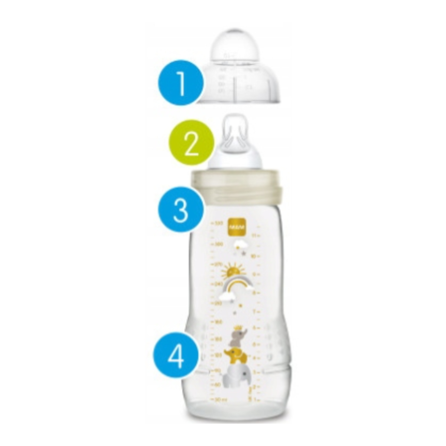 - 1 часть анти -колорной бутылки 330 мл с быстрым потоком соски в 4 месяца+ (3) в соответствии с данным цветом
