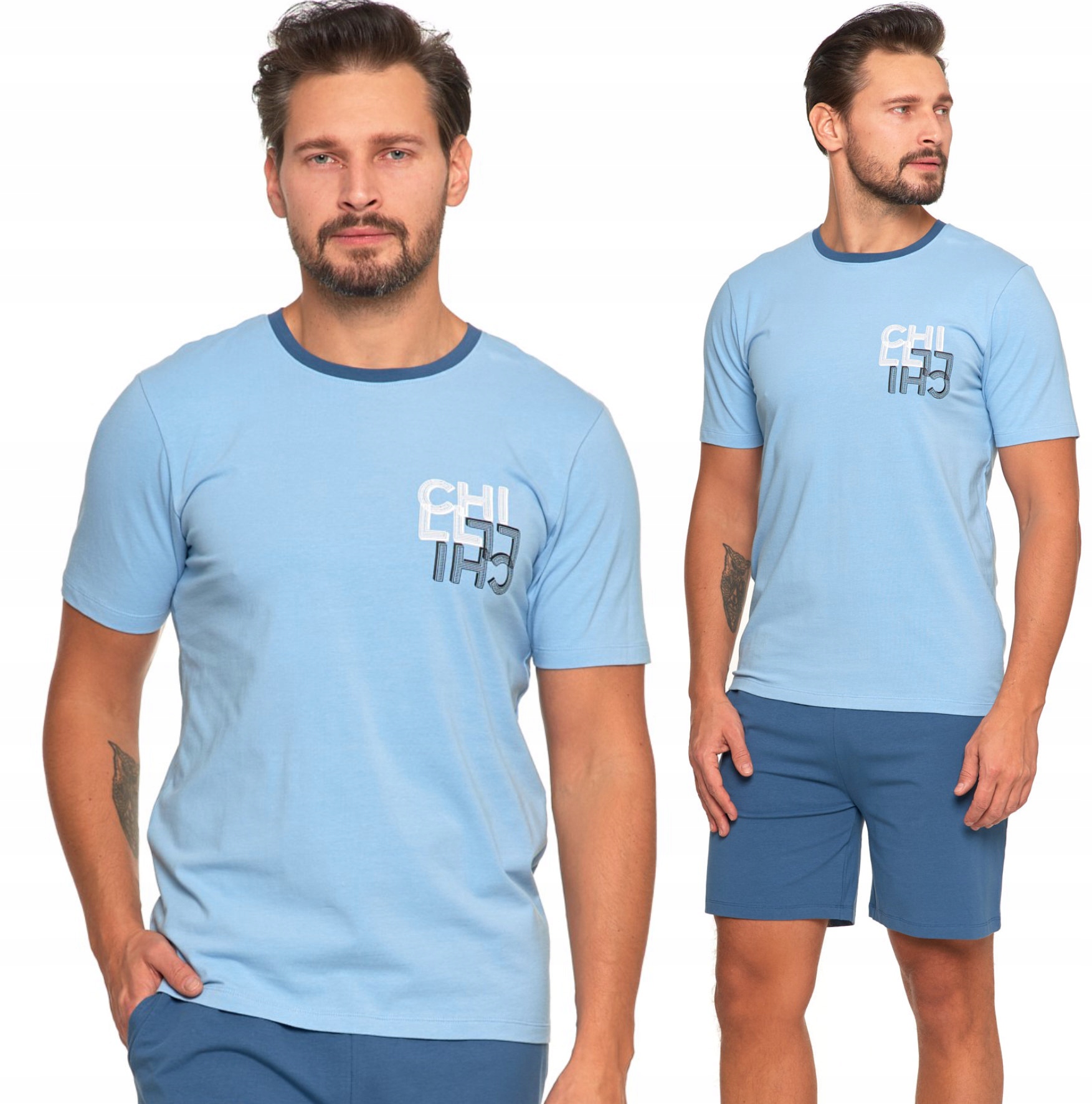 Стильный, удобный и с характером - эта пижама - идеальный выбор для человека, который ценит комфорт, но не отказывается от хорошего стиля. Голубая T -мала с контрастным принтом «охладить это» и более темная отделка на вырез, идеально гармонизирует с короткими шортами в джинсовой ткани.