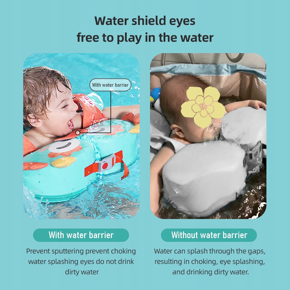 4. 【с водным разделением】 с разделением воды, чтобы предотвратить всплески воды и защищать ребенка от удушья, обеспечивая безопасные и приятные впечатления, плавающие без воды в их глазах.