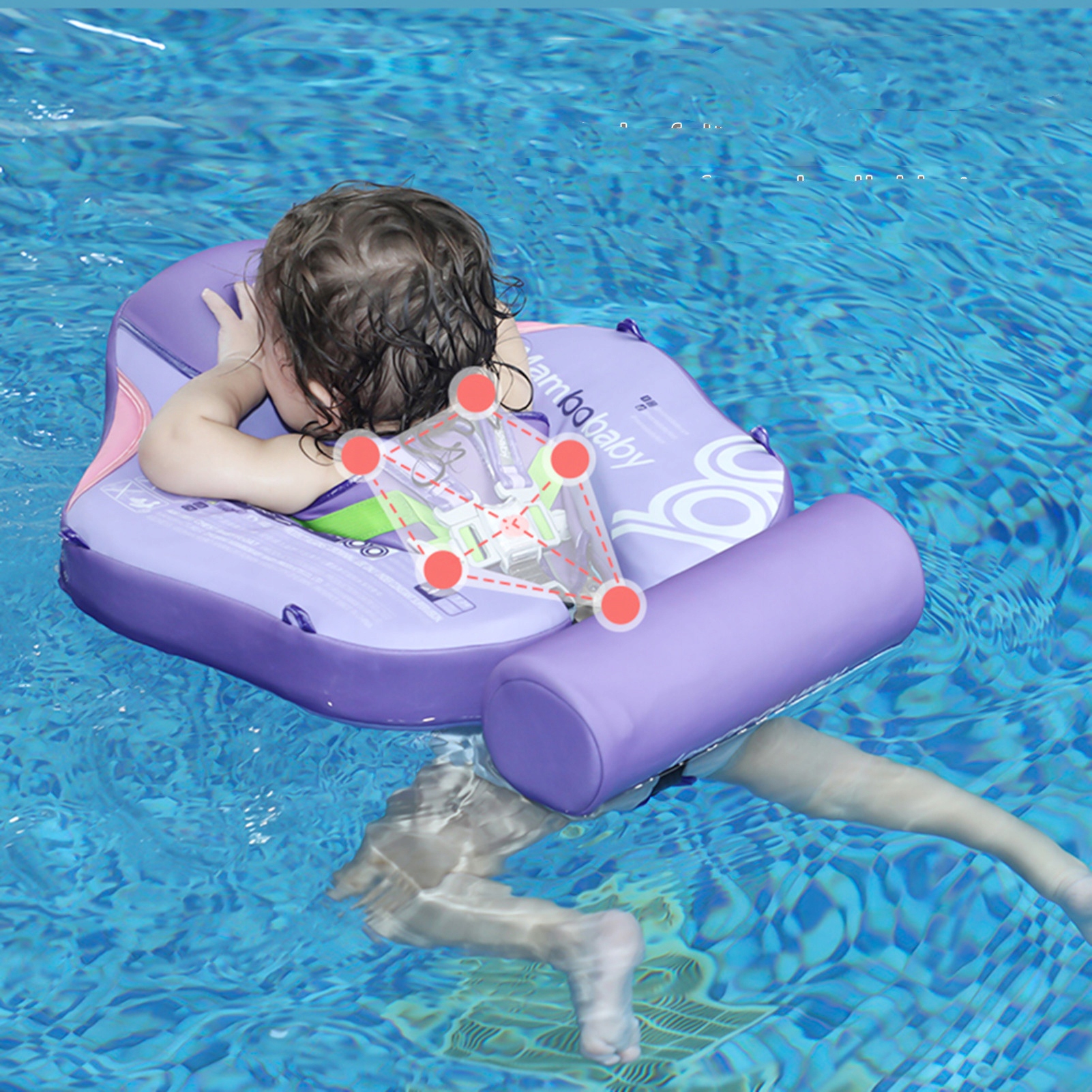 【Безопасный детский поплавок】Благодаря отстегивающейся пятипозиционной пряжке, предотвращающей выпадение ребенка, которую нелегко переместить вбок, он безопасен и доступен в использовании. Съемный хвостовой поплавок обеспечивает плавучесть и предотвращает обратный поток.