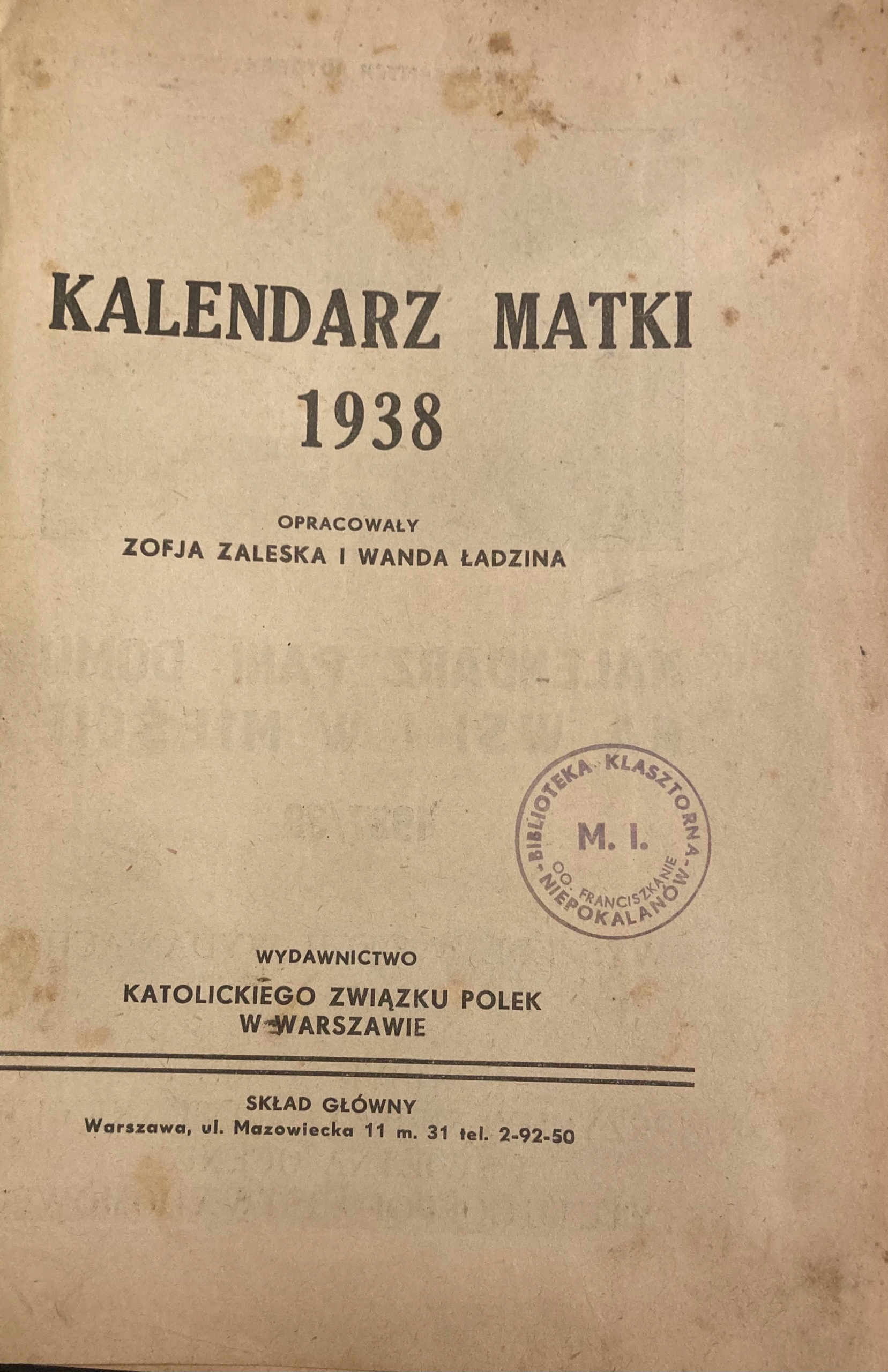 Мамин календар 1938 рік