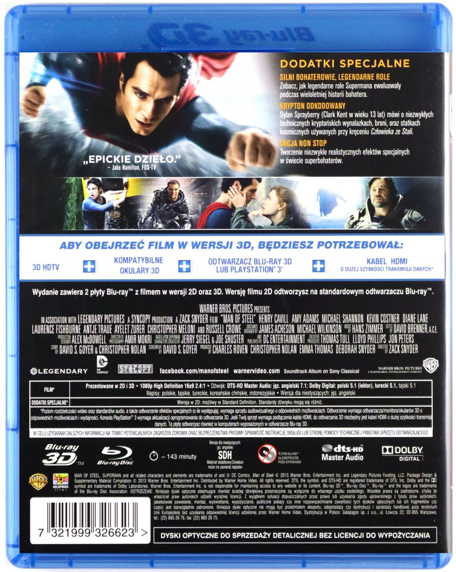 3D-экранизация одного из самых известных комиксов DC, снятая Заком Снайдером – создателем «300 спартанцев». За работу отвечает Кристофер Нолан («Трилогия Темного рыцаря», «Начало», «Престиж»). производство фильма. Начало новой серии о Супермене – одном из величайших супергероев. Отличный актерский состав (Рассел Кроу, Кевин Костнер, Эми Адамс, Генри Кавилл, Дайан Лейн), великолепные спецэффекты и оригинальный сюжет сделали фильм «Человек из стали» на Blu-ray 3D одним из самых громких кинохитов 2013 года. В релиз вошёл фильм в 3D и 2D.