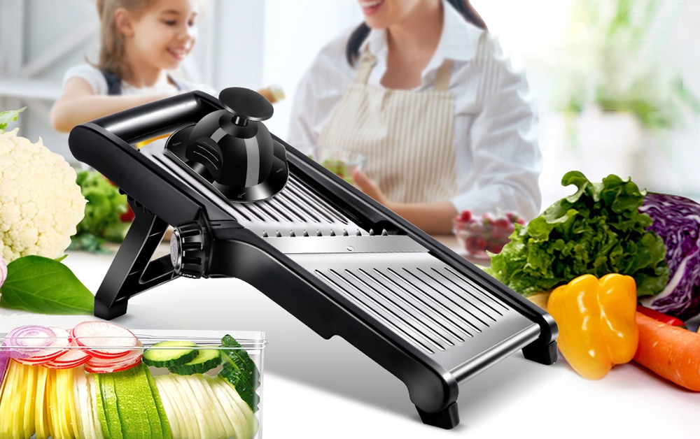 🔪 Острые лезвия из нержавеющей стали, , которые обеспечивают чистую резку всех типов пищи. Твердый дизайн, который предотвращает легкое изгиб и деформацию. Толщина может быть отрегулирована от очень тонкой до 9 мм. Анти -слава эргономична и обеспечивает удобную сцепление