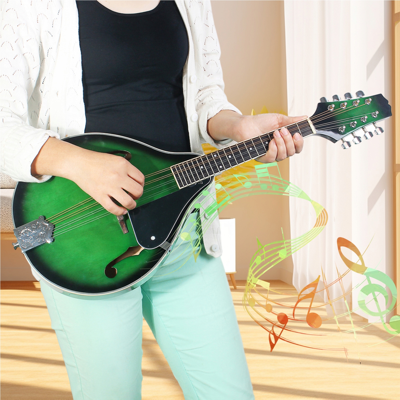 4. Стильная мандолина с относительно более широким диапазоном из 20 порогов и хромированным тюнером для открытой передачи подходит для начинающих и опытных в использовании.