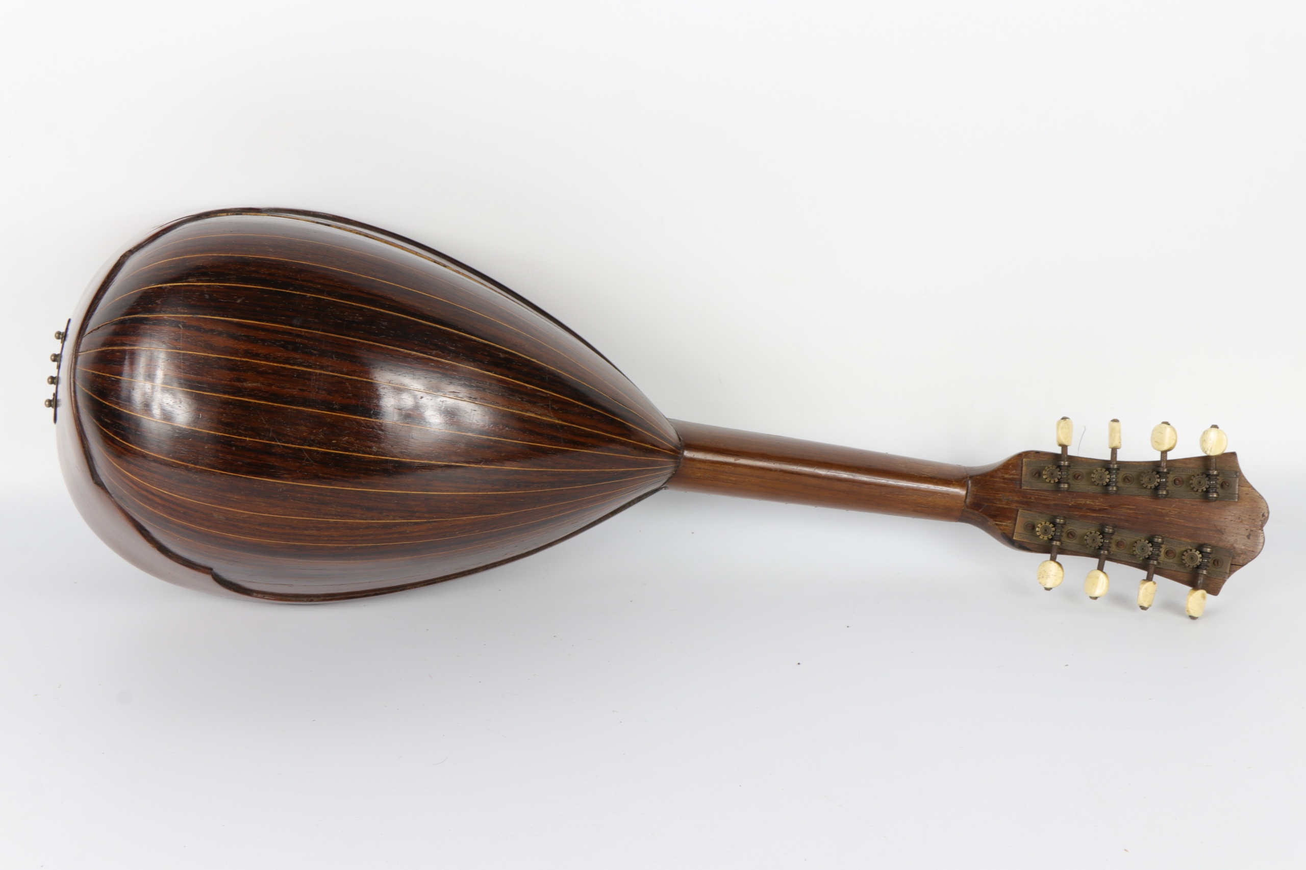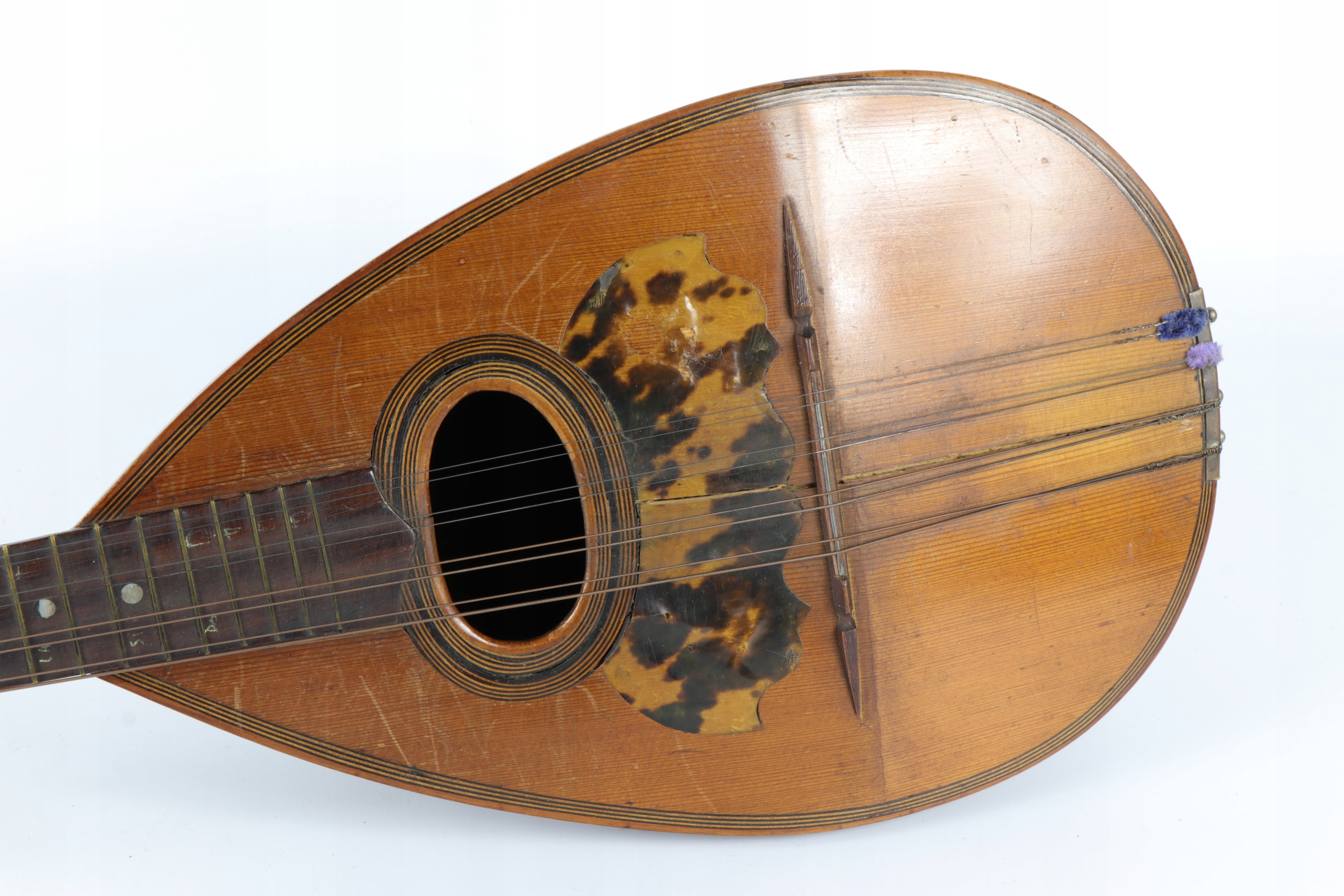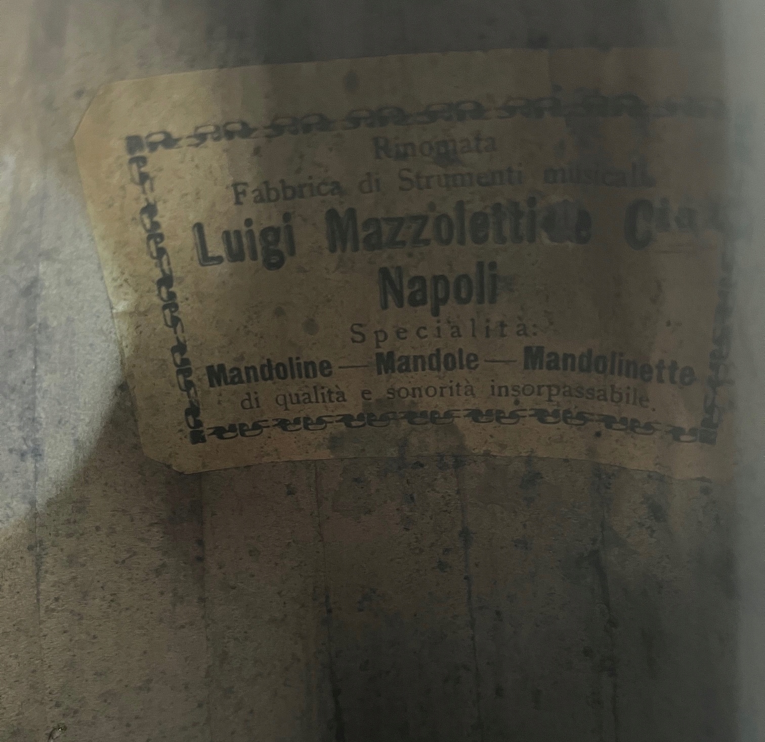 Мандолин подписан с знаком Луиджи Маццолетти Наполи. Резонансная трубка, украшенная знаком, ключевые держатели, сделанные из кости. Мандолина в исходном случае в буфер обмена несколько дополнительных оригинальных старых строк