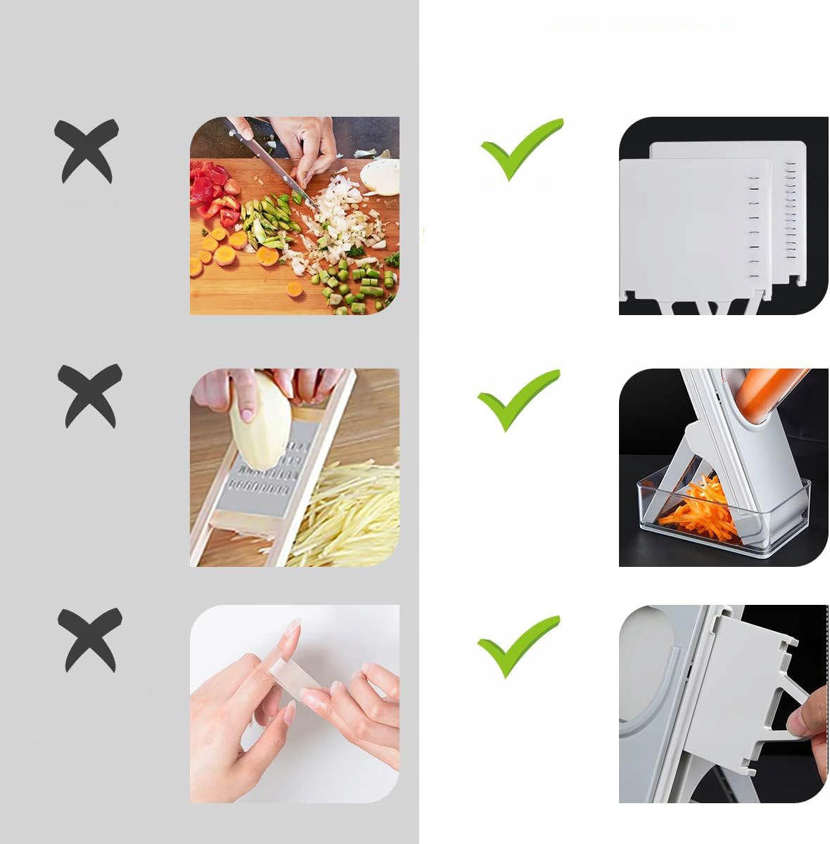 ✅ Вы можете быстро и уверенно разрезать овощи, не опасаясь несчастных случаев.