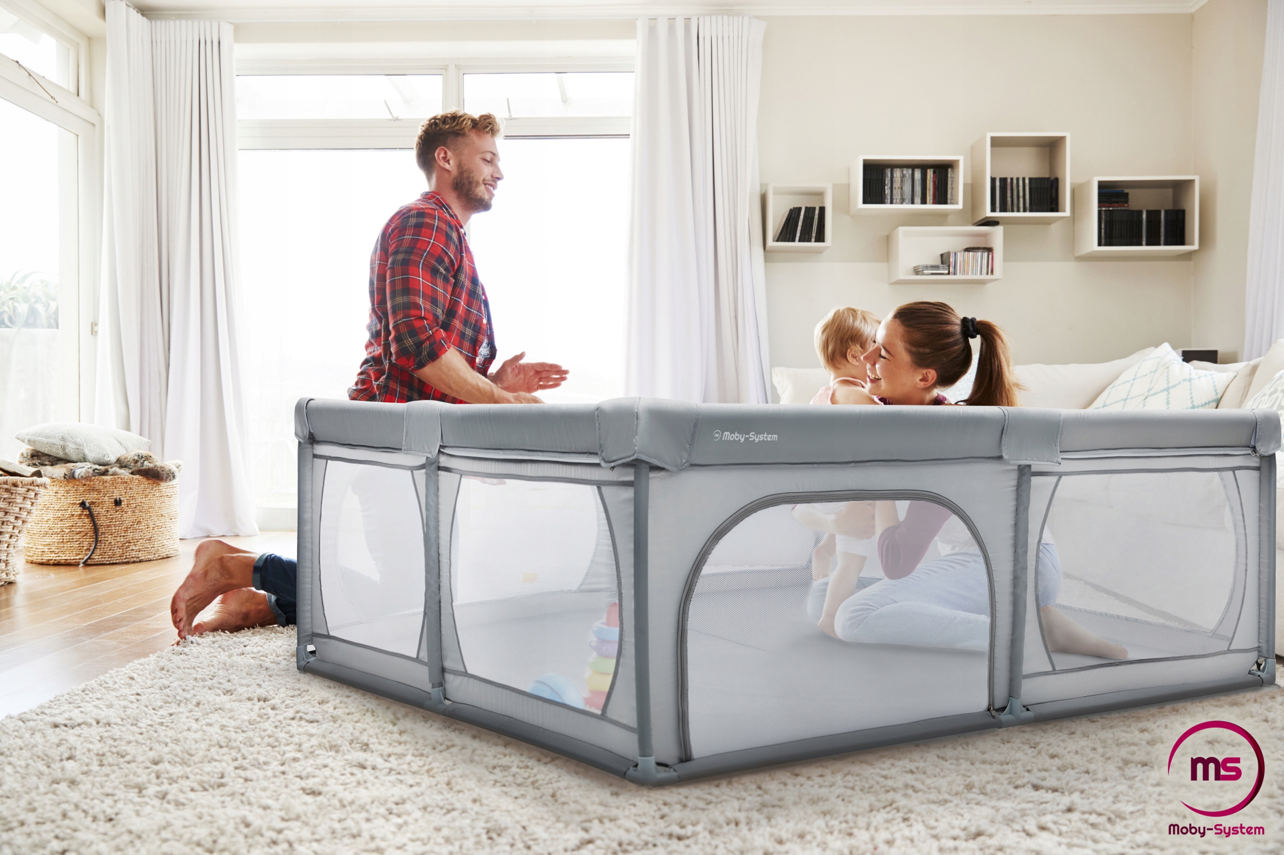 манеж Moby-System сконструирован таким образом, что его можно разобрать и собрать всего за несколько минут без использования инструментов.
