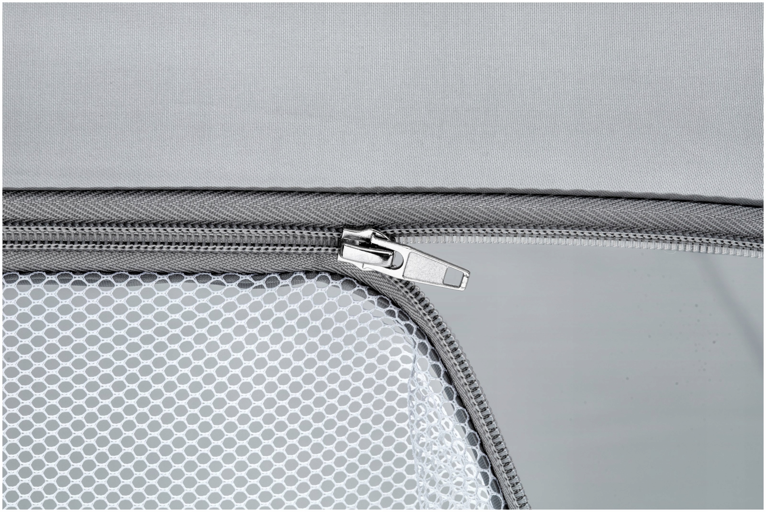Прозрачная ткань со всех сторон означает, что ребенок не чувствует себя «закрытым», как это бывает в случае с манежем. в манежах с непрозрачными стенками. . С другой стороны, это дает воспитателю возможность видеть ребенка со всех сторон.