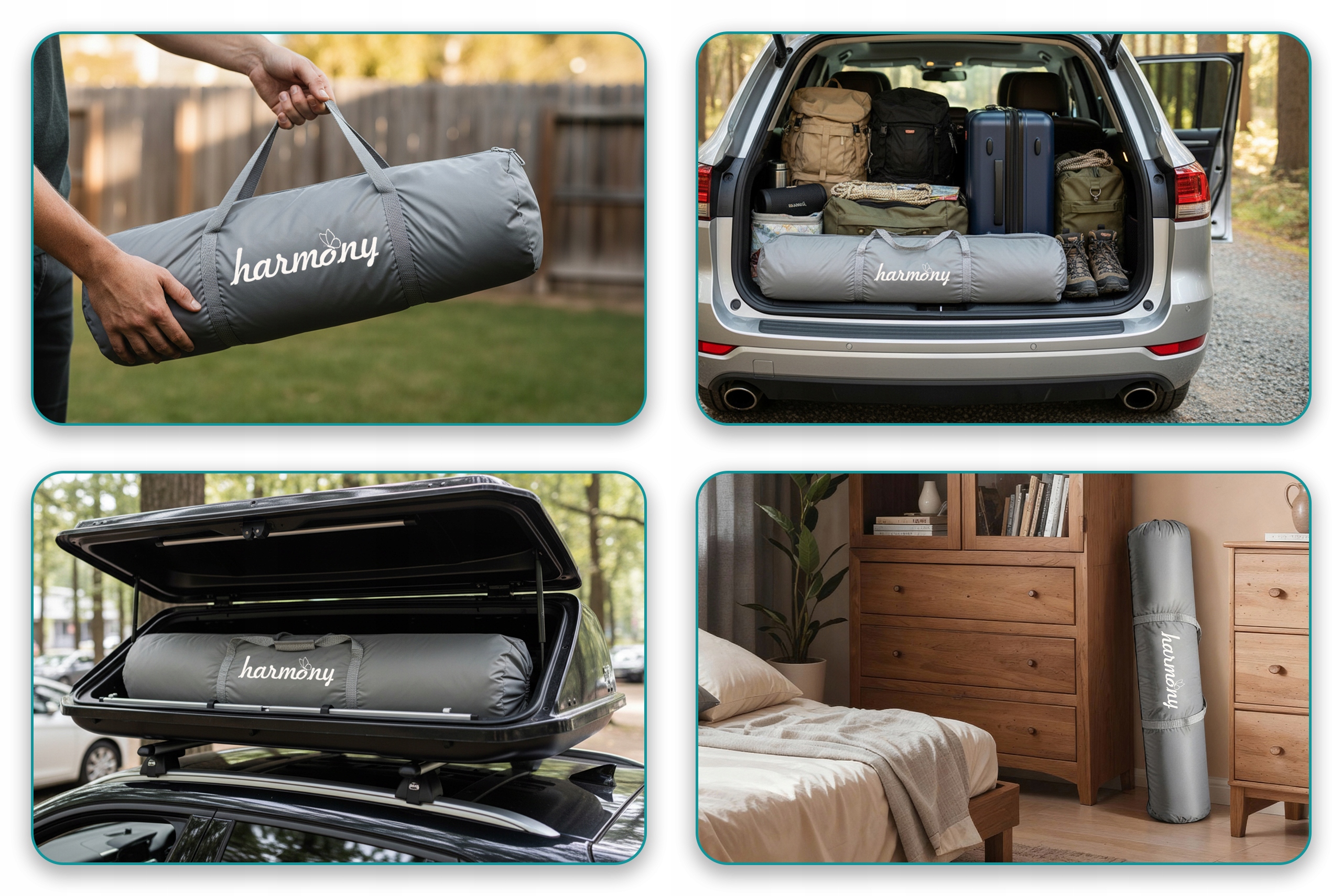 В комплект также входит удобная сумка, позволяющая легко хранить и транспортировать манеж. Благодаря сумке манеж сразу готов к путешествию или можно положить в шкаф.