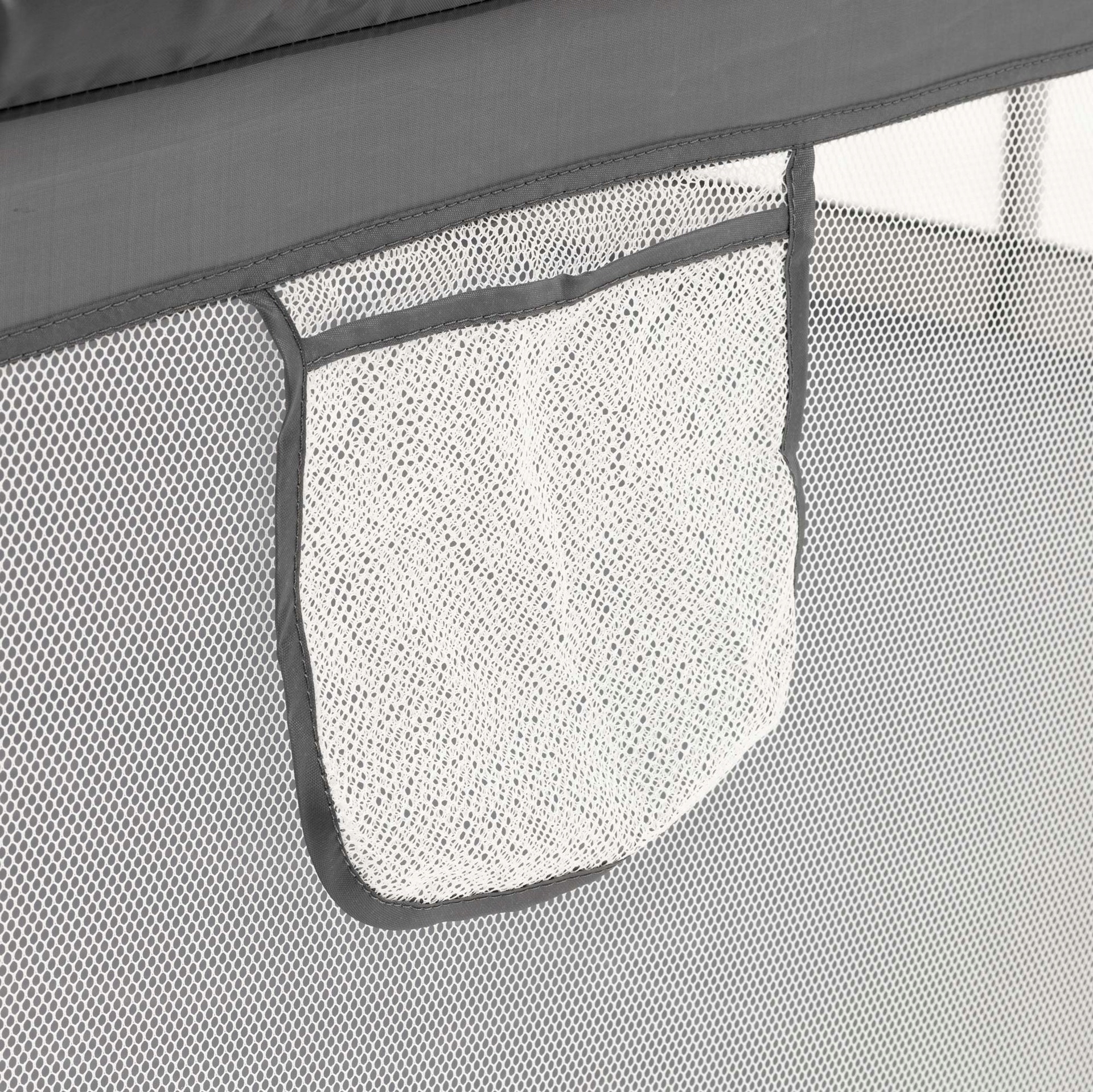 Материал, используемый в манеже, прочен, устойчив к истиранию и легко чистится. Воздушная сетка позволяет постоянно наблюдать за ребенком и обеспечивает достаточную циркуляцию воздуха. Изделие имеет сертификат CE, подтверждающий его безопасность использования.