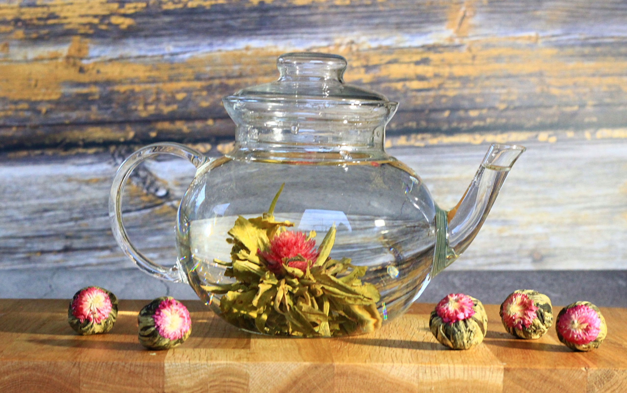 1 Шар должен быть вставлен в стеклянный, устойчивый к теплу сосуд или специальный чайник, налейте воду с температурой 80 градусов по Цельсию, варел до тех пор, пока все не развивается (4 - 5 минут). Количество воды необходимо для варки составляет 800-1000 мл. Убедитесь, что цветок не остается в инфузии более 10 минут, потому что чай будет очень горьким. Чай можно снова заваривать, продлив время пивоварения до 8 минут