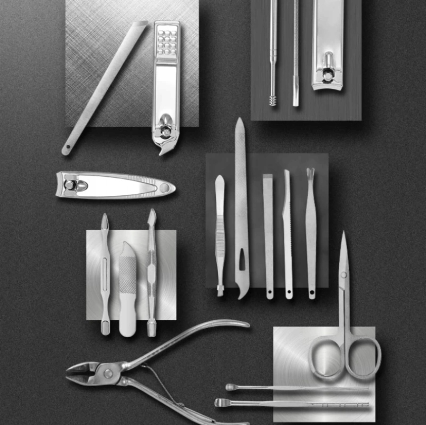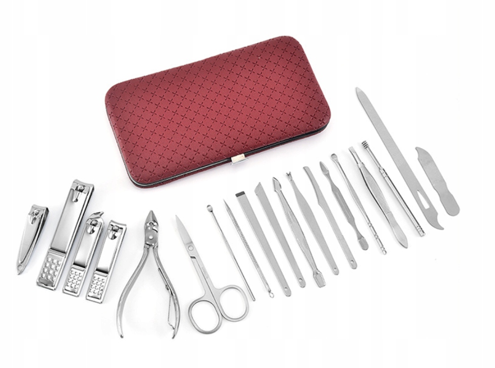 Практичный набор для ногтей состоит из 19 предметов для рук, ног и лица.