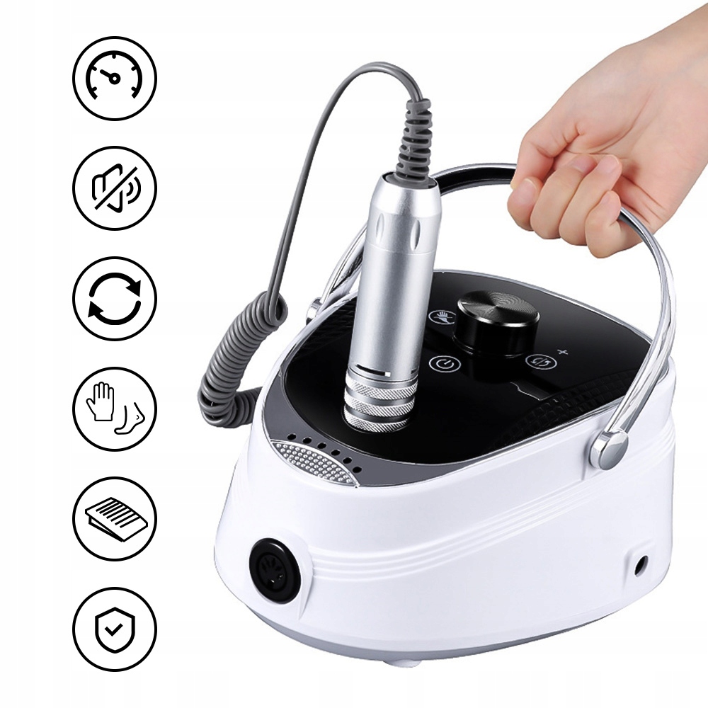 Легкий и быстрый маникюр - эта тренировка для ногтей работает со скоростью до 35 000 революций в минуту. Он достаточно деликатный, чтобы использовать его для натуральных акриловых ногтей, гибридных лаков и порошковых гвоздей, а также идеально подходит для удаления кутикул и мозолированной эпидермиса. Подходит как для домашнего использования, так и для профессиональных процедур в салонах красоты, включая моделирование, обрезку, шлифование и полировку.