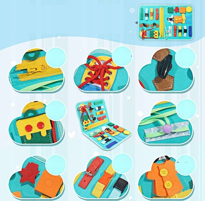 МАНІПУЛЯЦІЙНА ДОШКА годинник пазл взуття СЕНСОРИ М'ЯКА ВАЛІЗА
