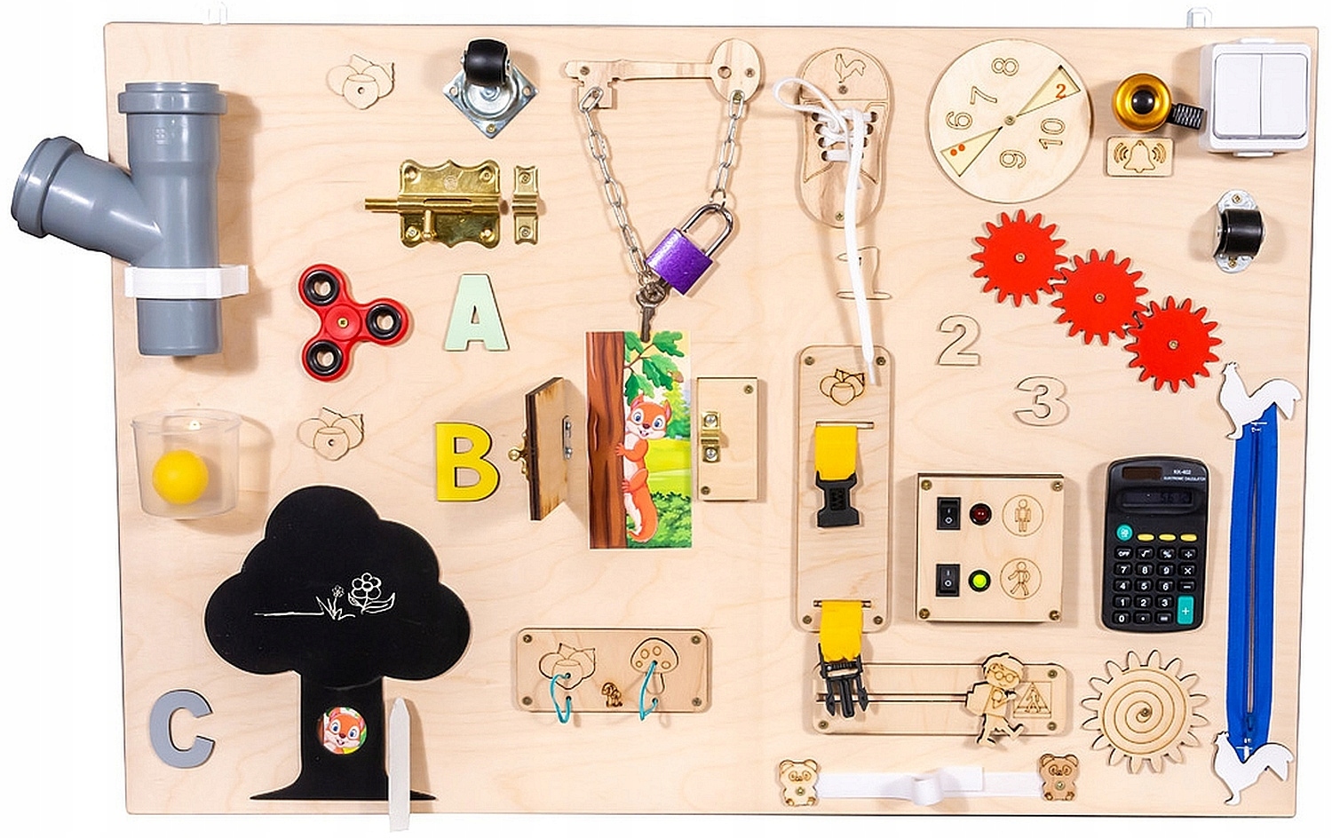 Сенсорная доска — отличная идея для творческого развлечения вашего ребенка. Обучение через игру – лучший способ правильного развития детей. Доска – идеальное место для отработки первых букв, цифр и правил пешеходного перехода. Правильно подобранные движущиеся и игровые элементы помогут вашему ребенку развить творческие способности и мануальные навыки. Кроме того, это будет стимулировать его изобретательность и побуждать его исследовать окружающий мир.