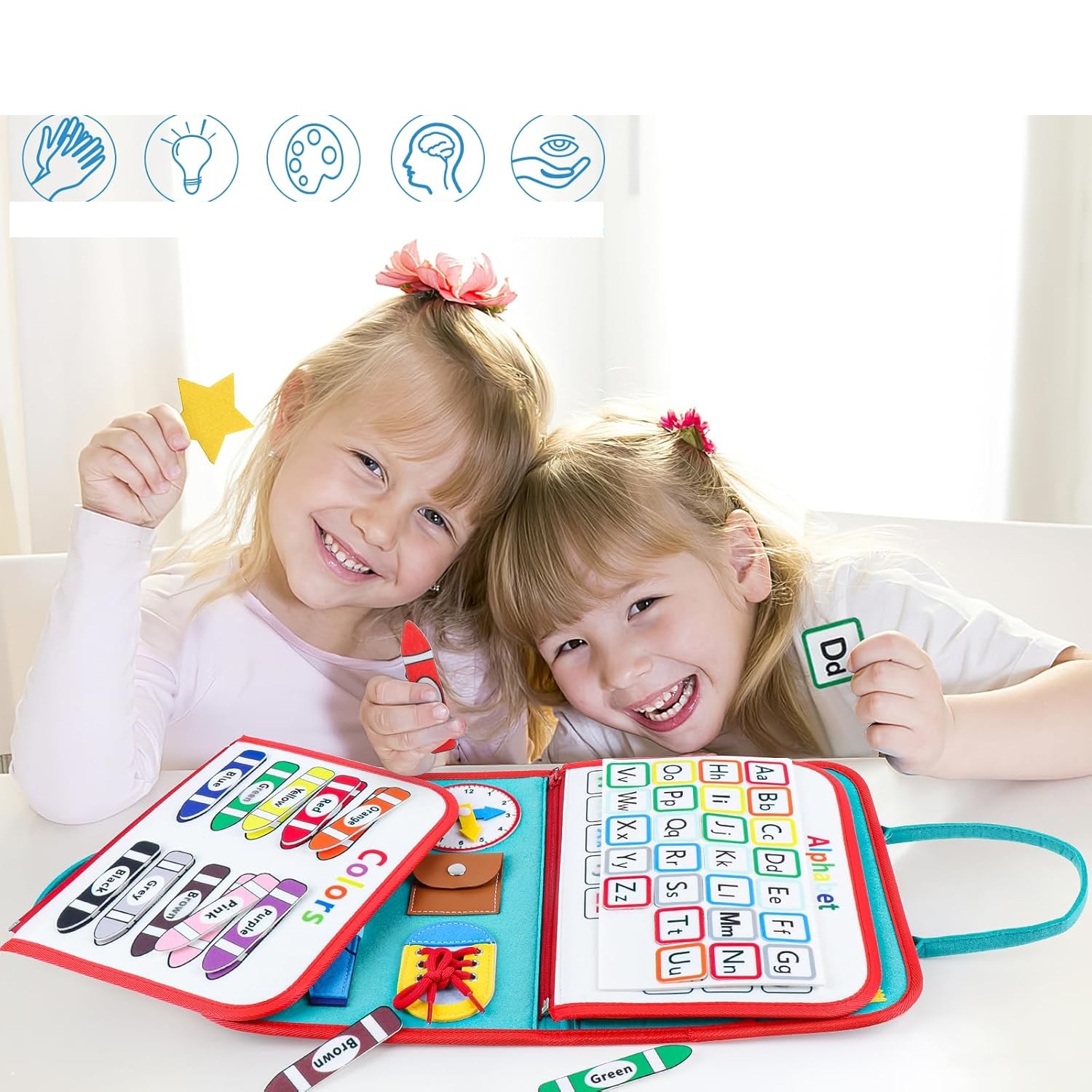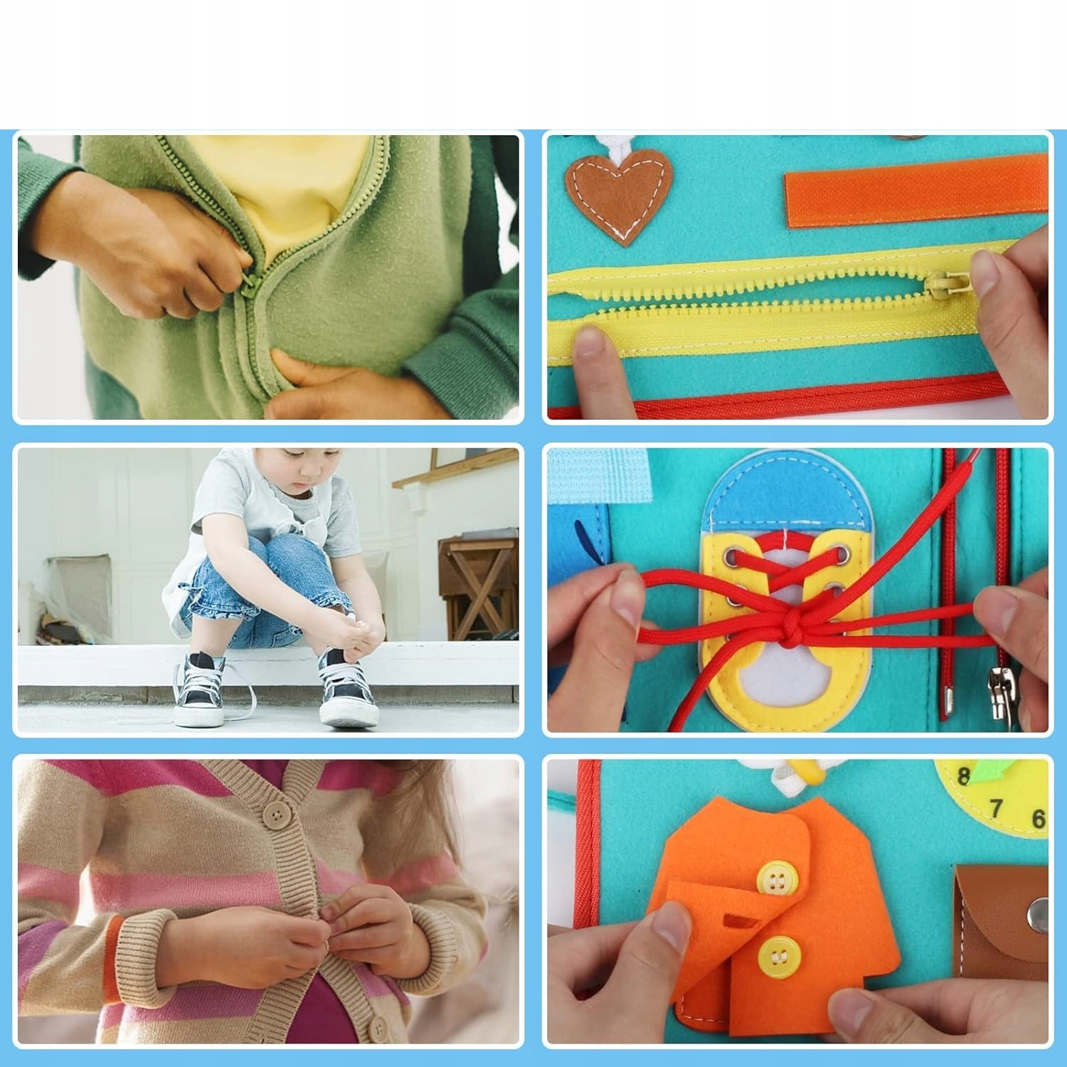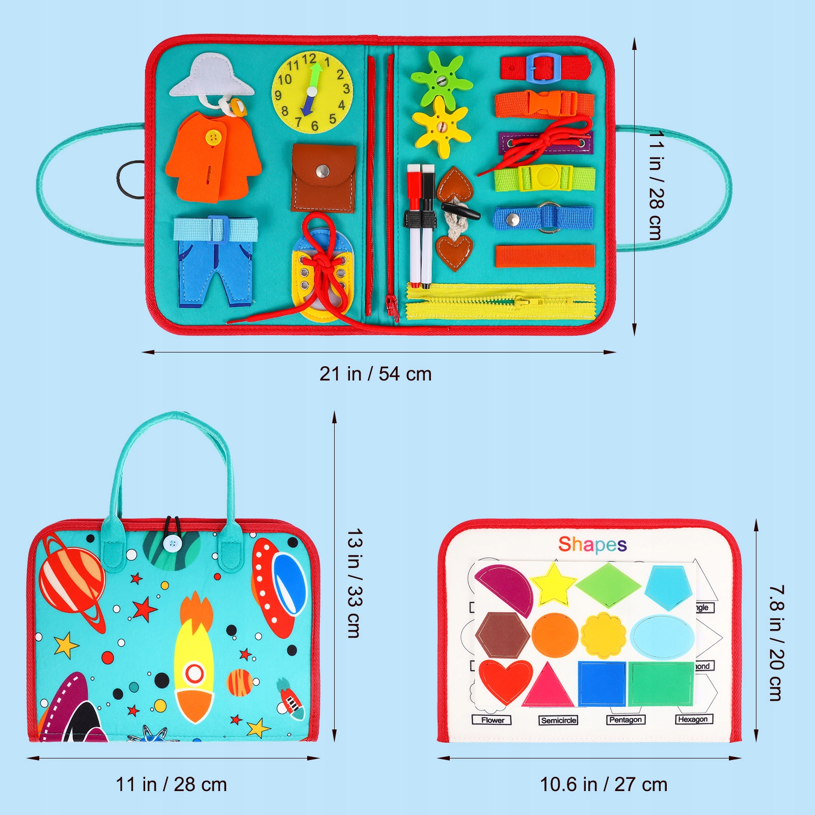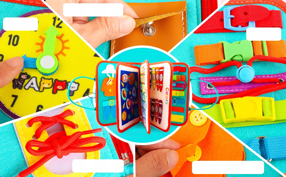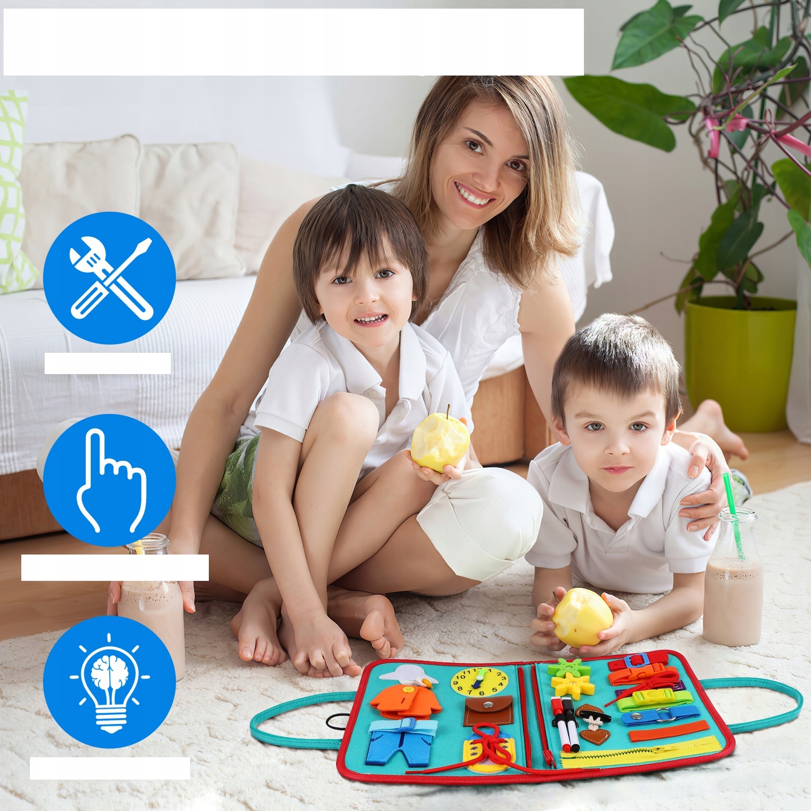 【Практические жизненные навыки】 b> Наша манипулятивная доска Монтессори поощряет быть независимыми и помогает им практически знать жизнь, такую как одевание, кнопки крепления и контроль замки и отношения обуви. Это также может помочь в случае моторных навыков и конечной катастрофы. рюкзак и оставьте его с собой. Это также отличная игрушка для путешествий/автомобиль и для длительных поездок, доставленных с занятием и развлечениями во время полета. Дети развивают когнитивные навыки, такие как цвета, число, буквы и формы. Решение возможно, если есть необходимость думать о детях, концентрации, изобретении и решении проблем, которые возникают после решения проблем в школах. игрушки для детей в возрасте от 1 до 5 лет, в том числе для детей с аутизмом. Создание подвижного войлока из шерсти, материала ABS, безопасного для детей, все детали твердо устанавливаются, обеспечивает много часов перерыва и свободное время/бабушка и дедушка передышки. B> Наши игрушки Монтессори - идеальный подарок на день рождения, Рождество, для дошкольников, а также классный приз. Если вы все еще не знаете, какие подарки доступны для мальчиков и девочек в возрасте от 1 до 5 лет, они доступны для этого. (Занятая книга книга содержит много небольших частей, поэтому рекомендуется играть детей в возрасте до 3 лет под воздействием человека)