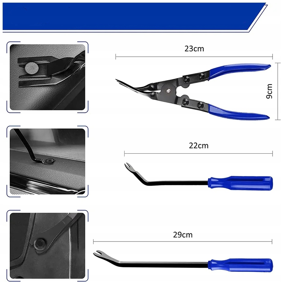 Набор включает в себя элементы 39 , включающие быстрое демонтаж обивки с любого интерьера автомобиля. Специализированный Welt в удобном case рекомендуется для разборки обивки и автомобильных планок. Набор рекомендуется для работы на автомобиле, обивке, услугах тела и краски. эти инструменты необходимы как в автомобильных семинарах, , так и для людей, имеющих дело с различными ремонтами самостоятельно.