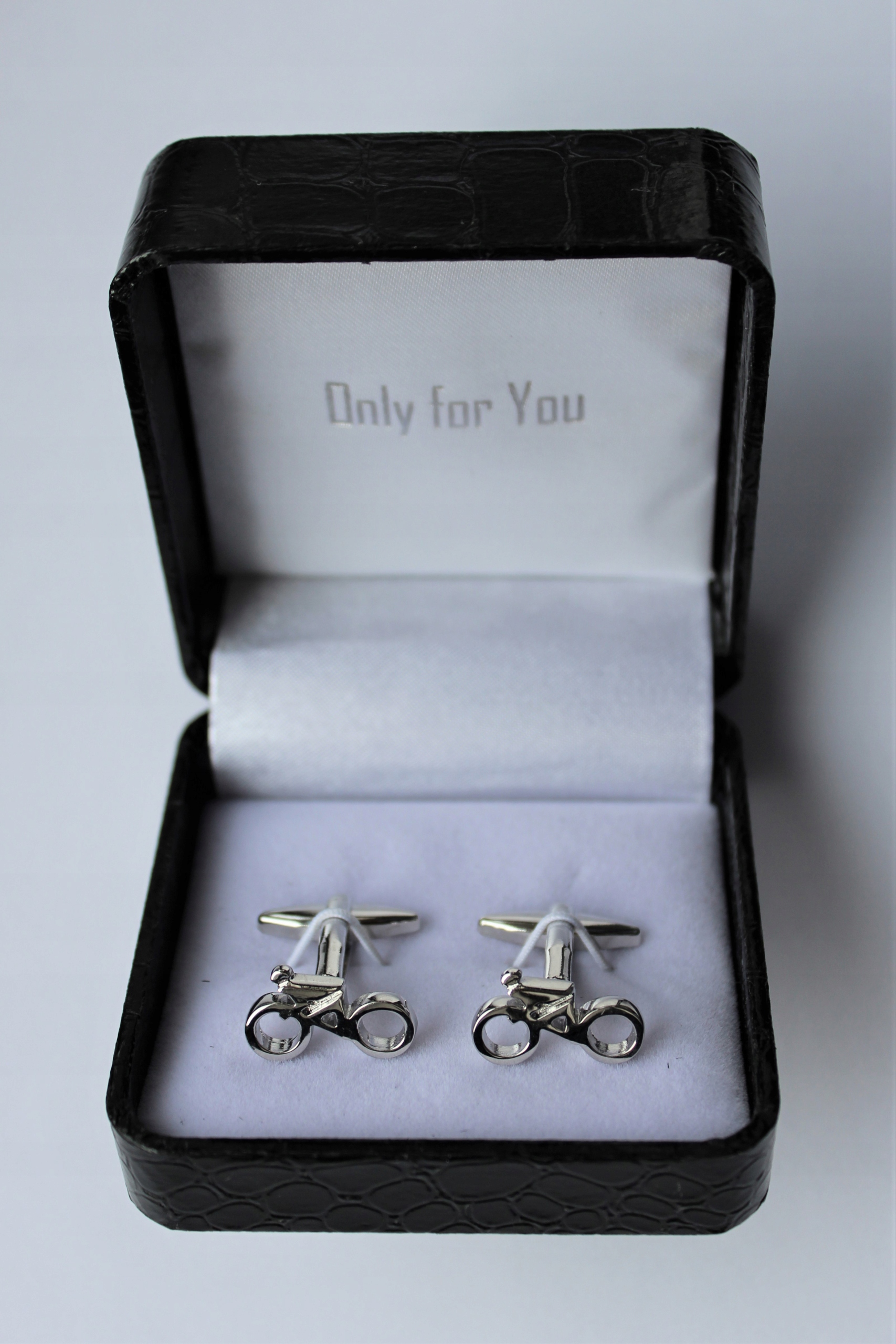 Стадия запонок, произведенных дизайнером Clinks e x c i n g в виде миниатюрных велосипедов, велосипедистов, упакованных в аккуратный, эксклюзивный случай для запонок. Такие красиво спроектированные и сделанные запонки являются идеальной идеей для оригинального и интересного, но в то же время практическое дар элегантного человека.