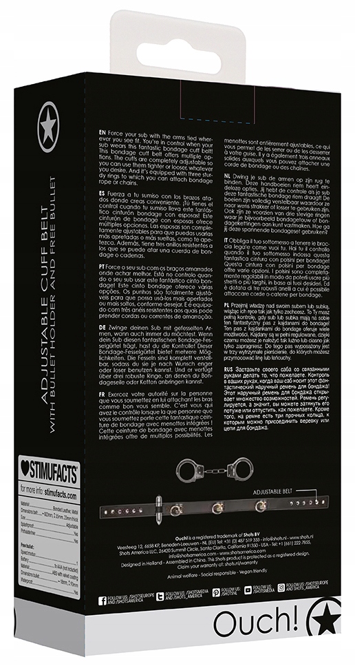 Возьмите с собой питание над подчинкой или подчинкой, привязанными к их рукам. Этот ремень с наручниками в рабство предлагает много возможностей. Кандалы полностью регулируются, поэтому вы можете применять их настолько свободно или плотно, как хотите. Кроме того, ремень оснащен тремя прочными кольцами, к которым вы можете прикрепить веревку или цепи