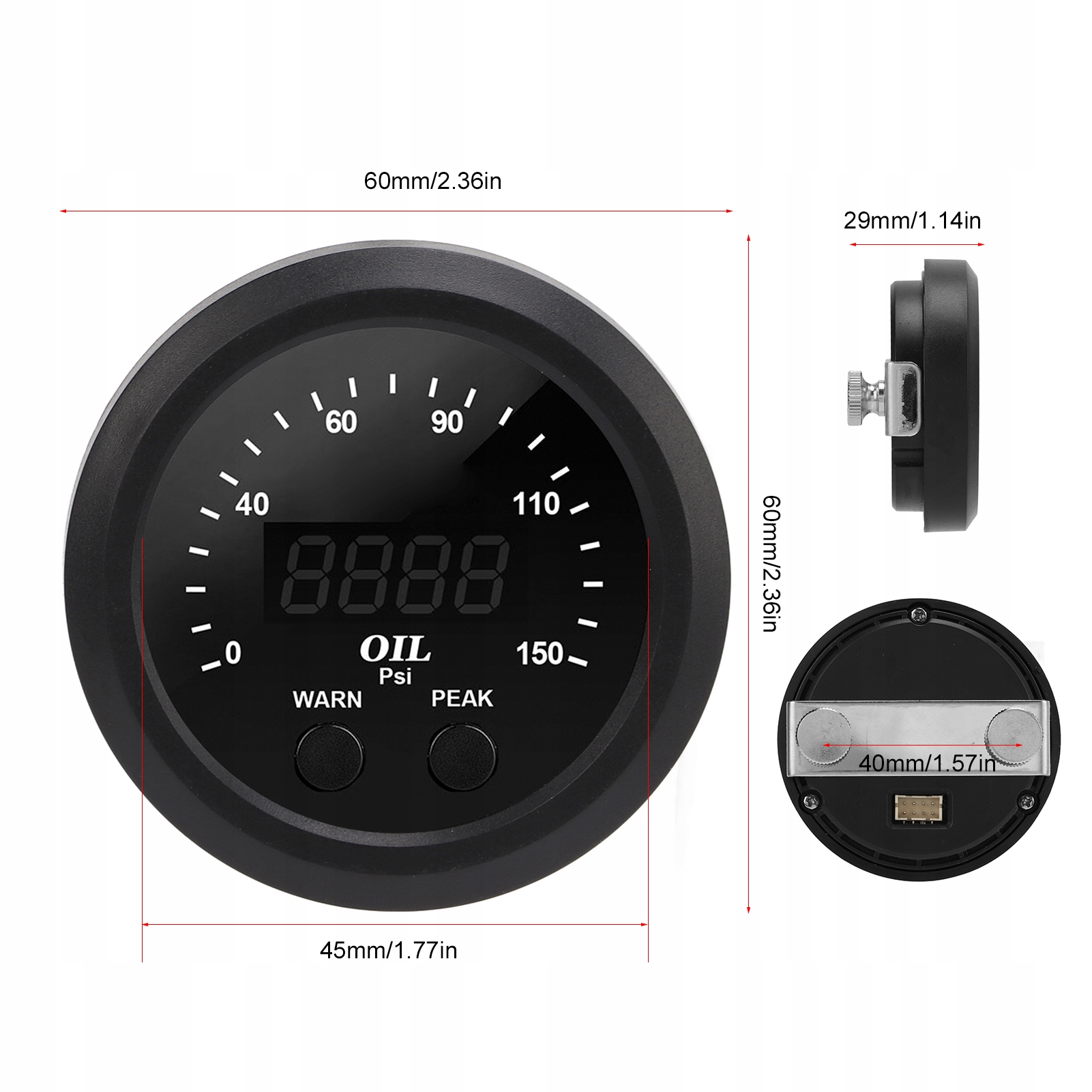 4. Максимум 150 фунтов на квадратный дюйм: максимальные показания давления топлива от 0 до 150 фунтов на квадратный дюйм, с красным светодиодом и белым фоном.